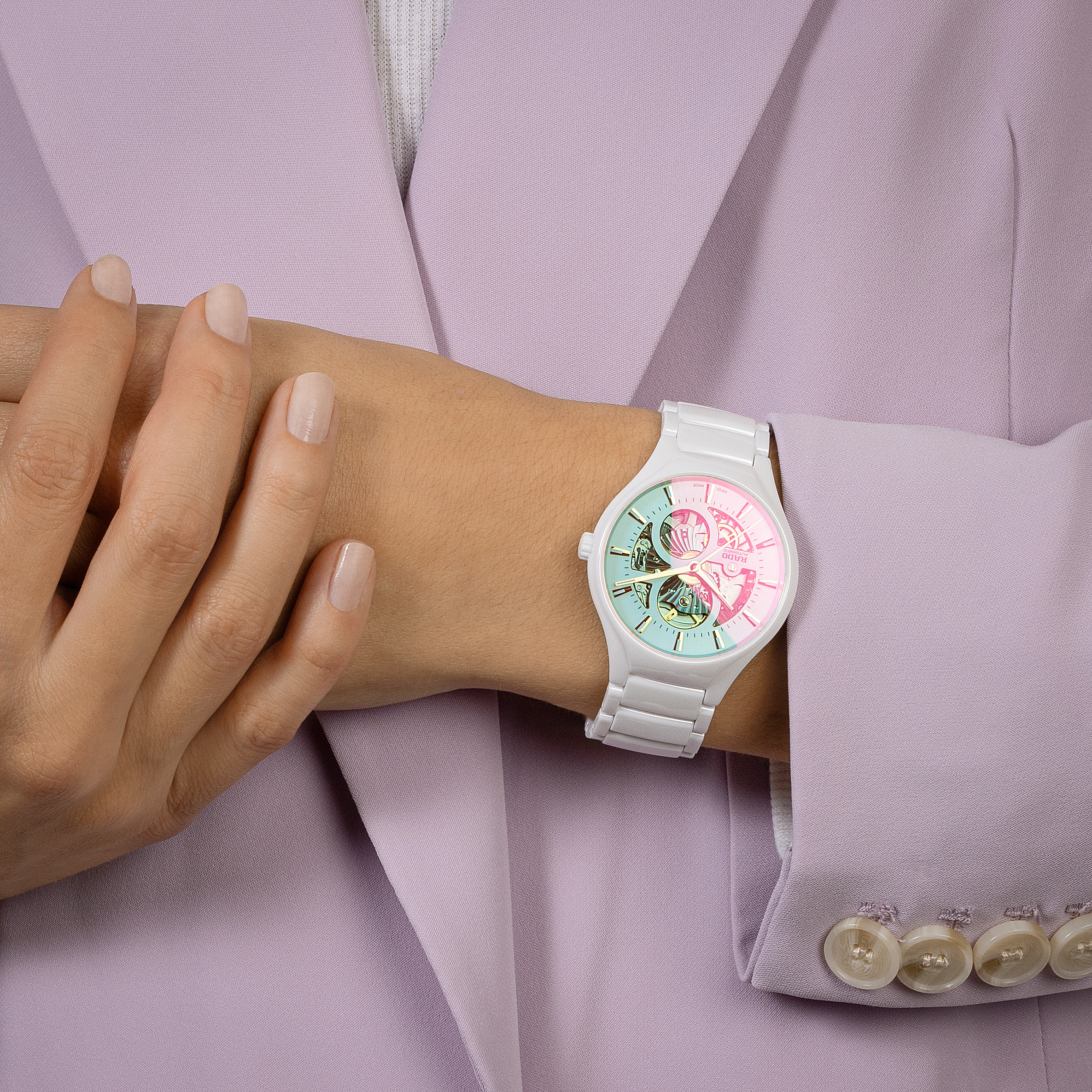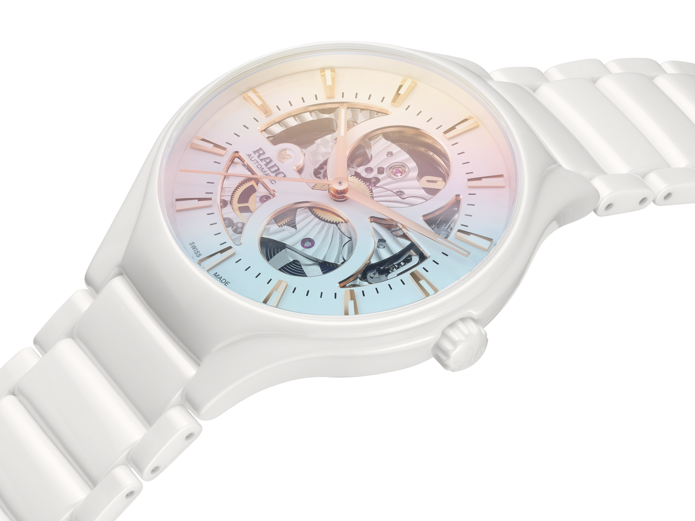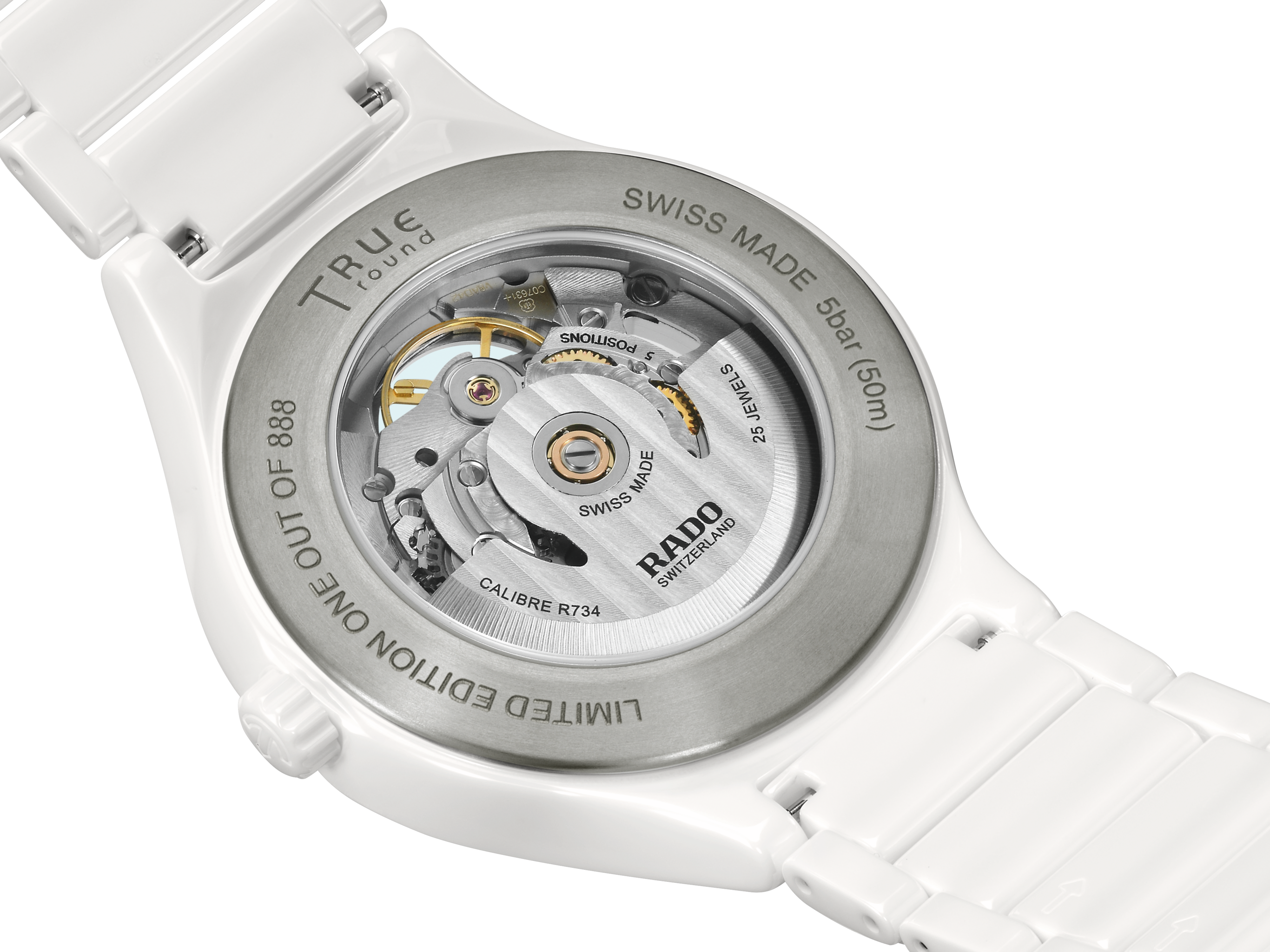 體驗Rado瑞士雷達表True真我系列開芯限量版腕錶卓越設計與精湛材質的完美融合。這款超卓非凡的腕錶採用令人目眩神迷的開芯設計,佩戴者能夠巧妙地欣賞Rado瑞士雷達表R734型自動機芯的精妙細節,并體會純粹的製錶藝術。腕錶搭載Nivachron™防磁游絲,擁有80小時動力儲存。錶盤上美麗的鏤空設計令人移不開目光,獨特的二向色性藍寶石水晶錶鏡可使錶盤不受損傷,色彩更是變幻迷人。玫瑰金色錶圈和覆有白色Super-LumiNova®夜光塗層的立體時標與白色太陽紋錶盤形成鮮明對比。腕錶搭配具有三折式錶扣的拋光白色高科技陶瓷鈦金屬錶鏈,令腕錶更臻完美。腕錶防水深度達50公尺。Rado瑞士雷達表True真我系列開芯腕錶,專為像你這樣鍾情於現代風格腕錶的時尚男女所設計,而時計蘊含的永恆魅力與風格,令腕錶成為當之無愧的紀念臻品。此款腕錶限量發行888枚,並附有限量版證書。