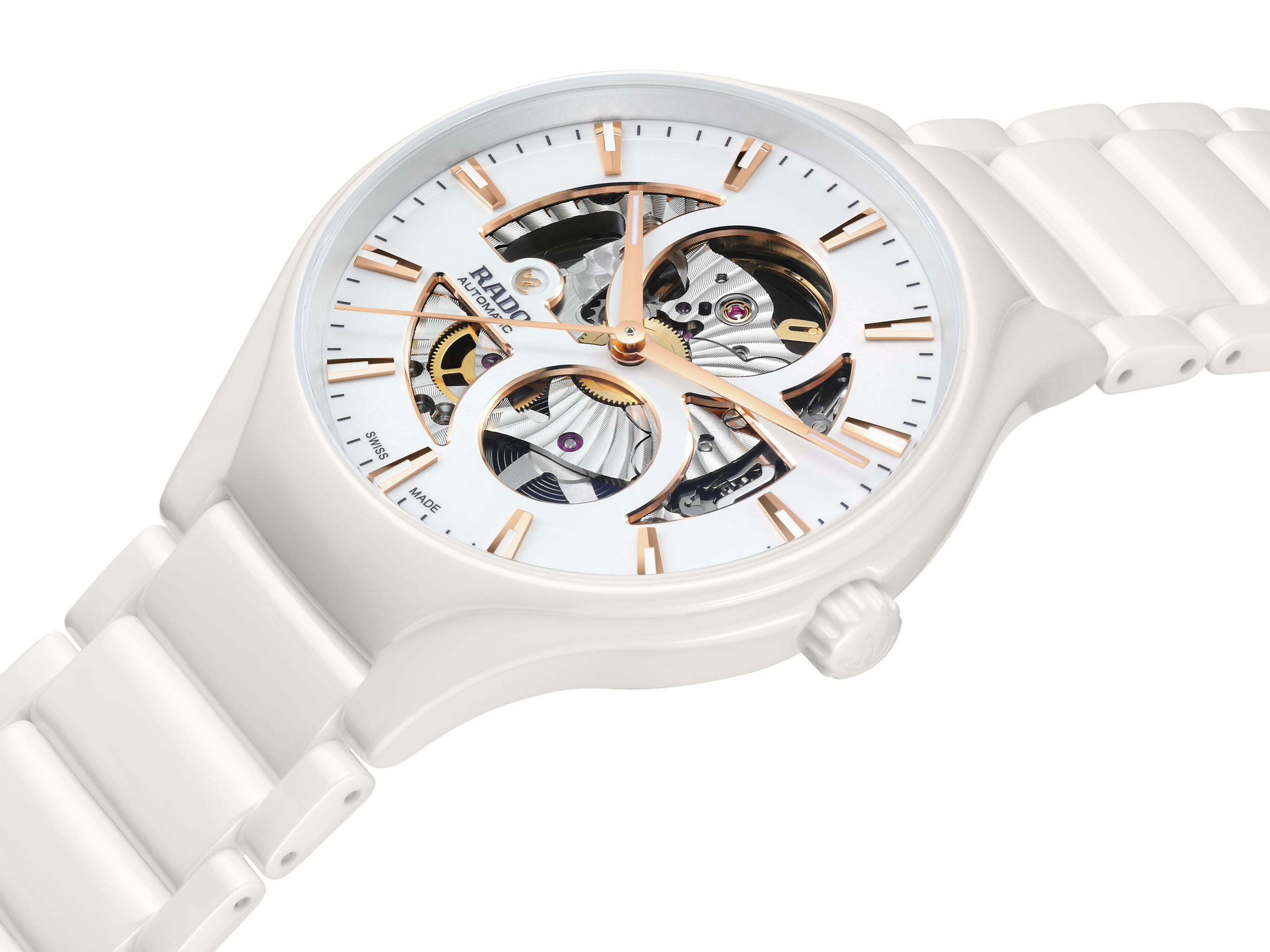 體驗Rado瑞士雷達表True真我系列開芯腕錶卓越設計與精湛材質的完美融合。這款超卓非凡的腕錶採用令人目眩神迷的開芯設計,佩戴者能夠巧妙地欣賞Rado瑞士雷達表R734型自動機芯的精妙細節,并體會純粹的製錶藝術。腕錶搭載Nivachron™防磁游絲,擁有80小時動力儲存。腕錶擁有拋光白色高科技陶瓷整體式構造錶殼和錶冠,並選用鈦金屬底蓋,且底蓋所搭配的藍寶石水晶,可讓人輕鬆欣賞機芯的風采魅力。腕錶採用白色太陽紋錶盤,搭配玫瑰金色斜面以及灰色印紋分鐘圈。這款白色腕錶搭配拋光白色高科技陶瓷錶鏈與鈦金屬三折式錶扣,完美襯托,恰到好處。腕錶防水深度達50公尺。Rado瑞士雷達表True真我系列開芯腕錶,專為像你這樣鍾情於現代風格腕錶的時尚男女所設計,而時計蘊含的永恆魅力與風格,令腕錶成為當之無愧的紀念臻品。