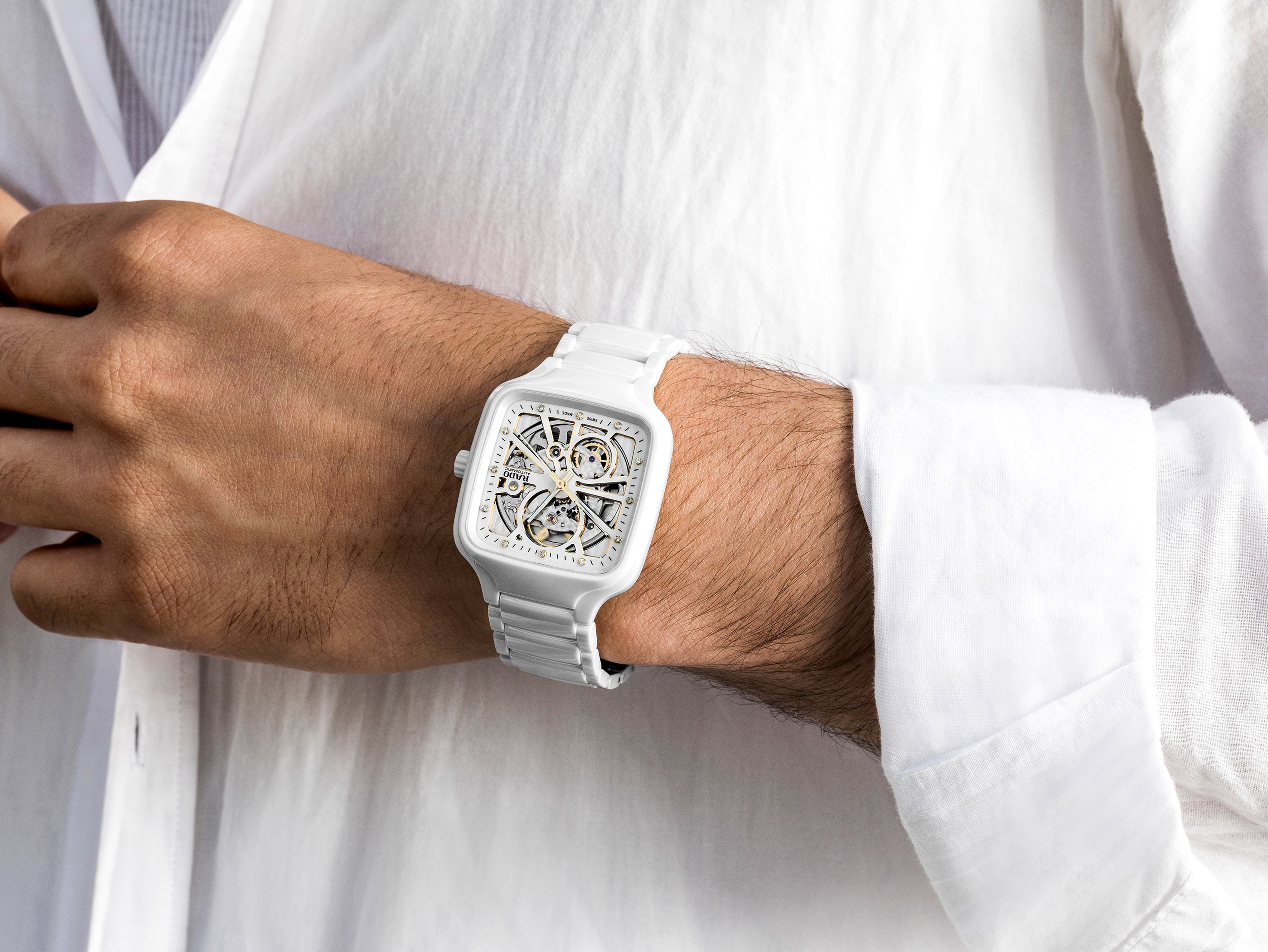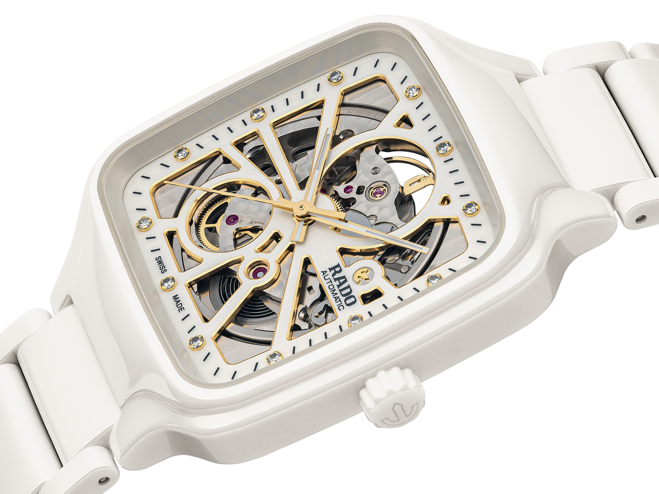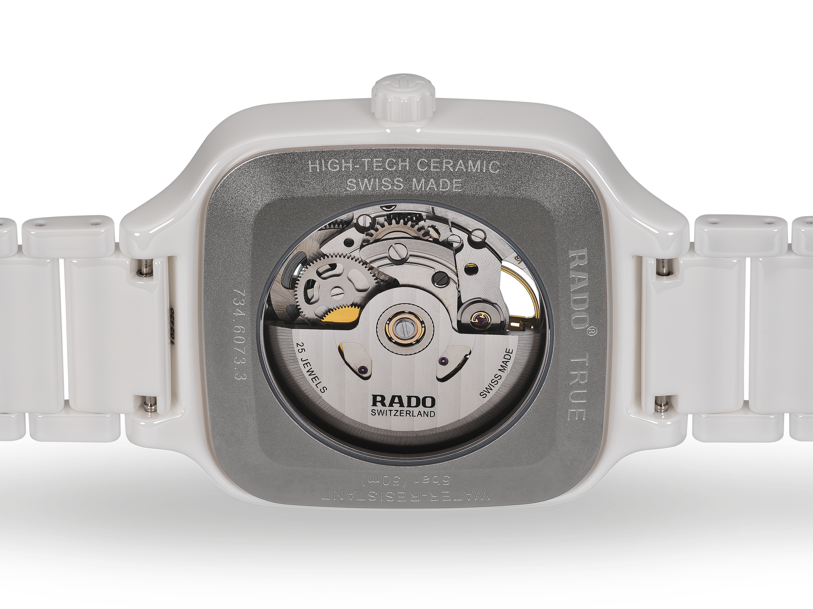 Rado瑞士雷達表以打造方形高科技陶瓷腕錶而著稱。True真系列方形腕錶全新詮釋了品牌的標誌性腕錶形狀。作為我們首款採用注塑成型整體式構造高科技陶瓷方形錶殼的錶款,True真系列方形腕錶輕盈、耐磨損且提供舒適配戴感。Rado瑞士雷達表True真系列方形開芯自動機械腕錶擁有獨特的設計風格,引領著未來塑形風潮。