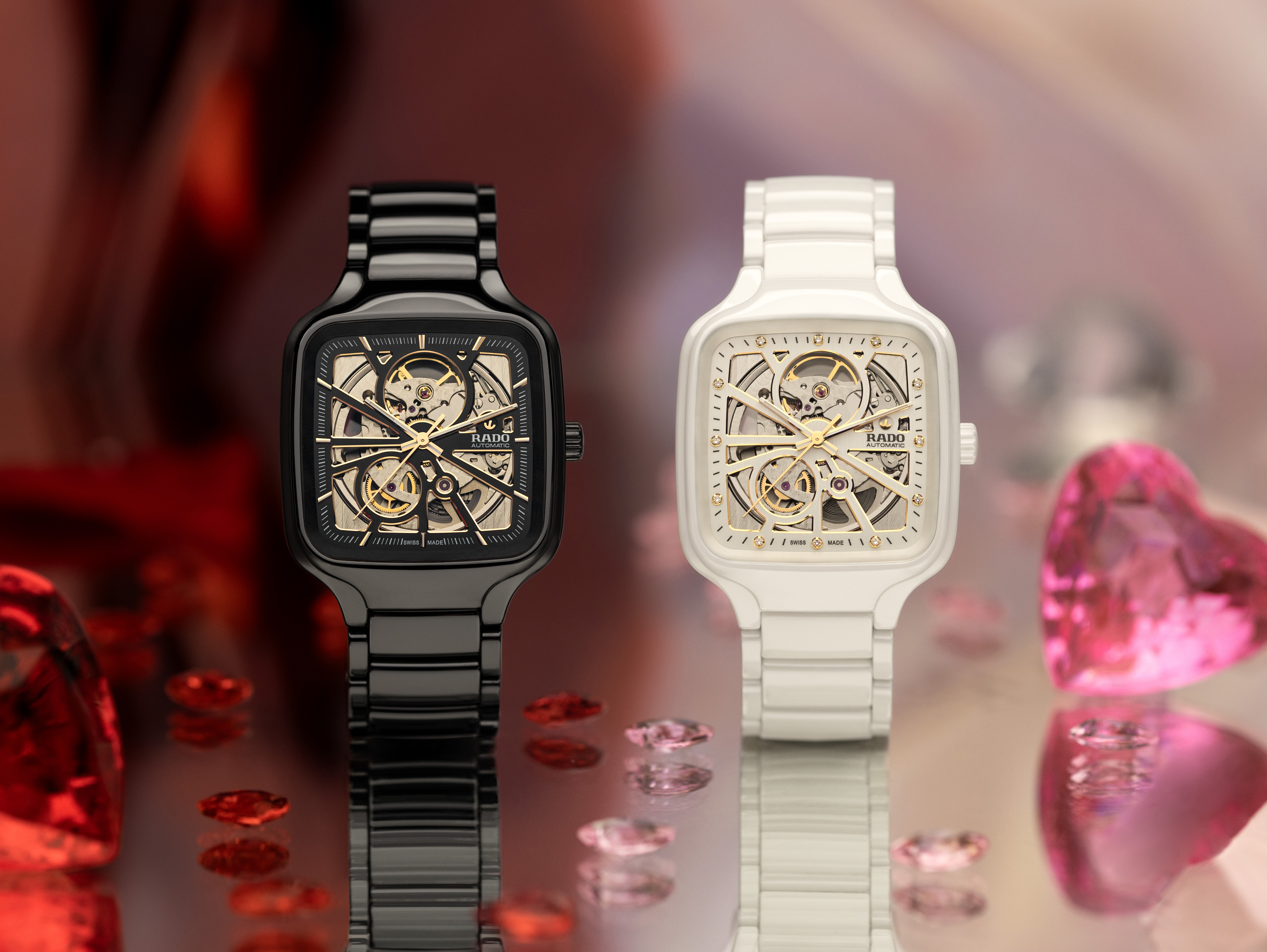 白色錶款的金色元素與閃亮鑽石相互輝映,或黑色高科技陶瓷點綴著耀眼玫瑰金,令Rado瑞士雷達表True Square真我系列開芯腕錶成為她與他腕間的奪目焦點。