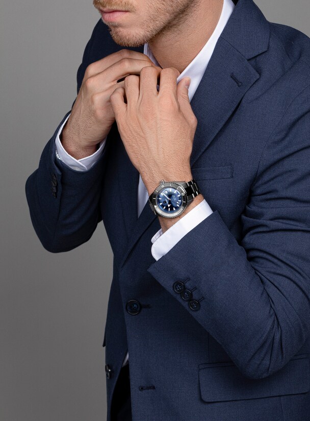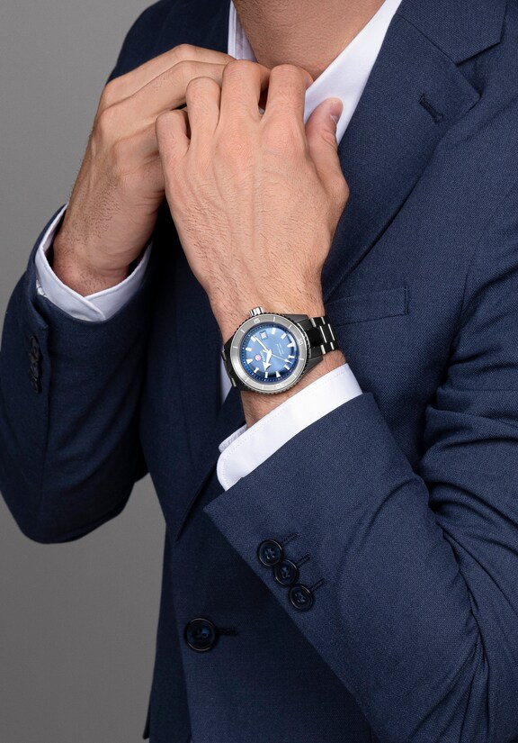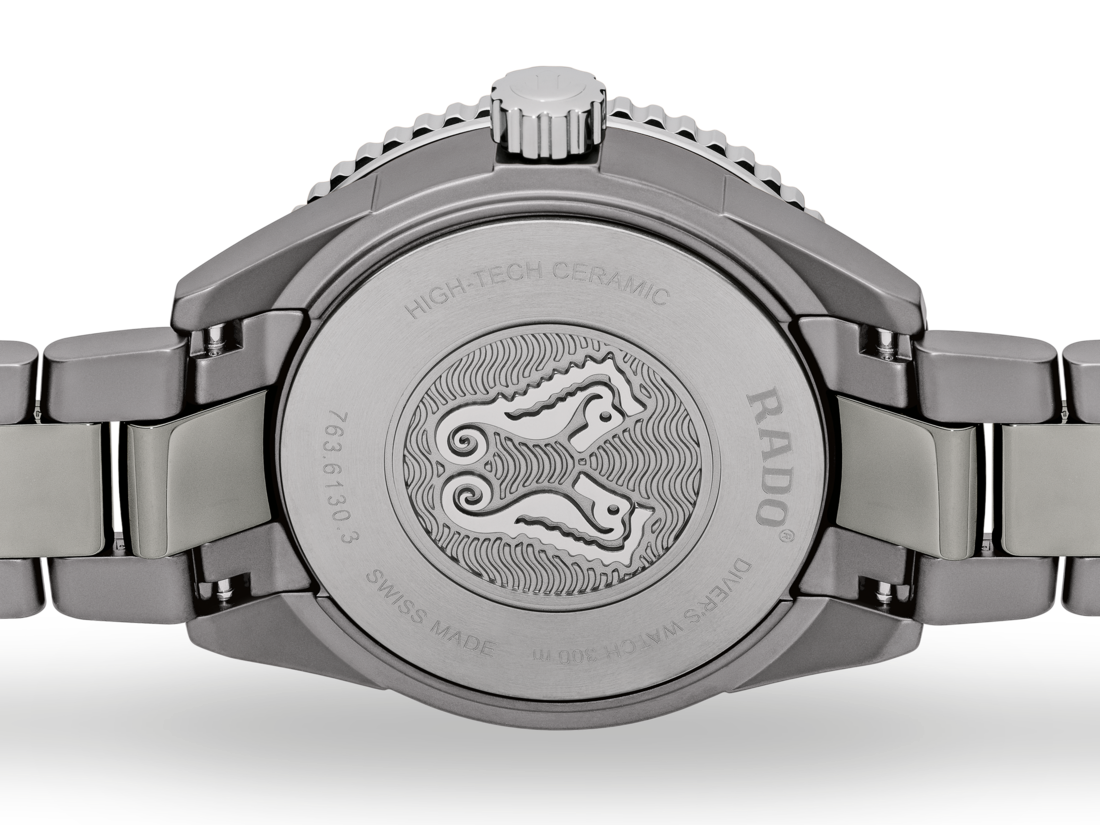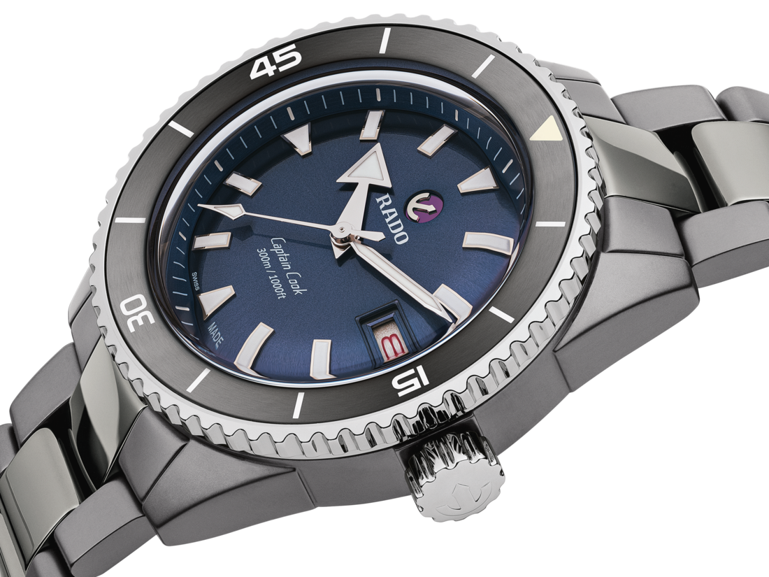 The Captain Cook High-Tech Ceramic Diver watch is water resistant down to 300 m. The hands and indices of the ISO 6425 certified diver's watch are coated with SuperLuminova® to ensure excellent visibility on the blue lacquered and polished dial. The 43 mm monobloc case is made of matte plasma high-tech ceramic, while the rotating bezel is made of polished stainless steel. Inside, the Rado R763 automatic movement exceeds standard accuracy test requirements from 3 to 5 positions and offers 80 hours of power reserve. This model comes with a polished, plasma, high-tech ceramic bracelet. Whatever your field of exploration is, your Captain Cook High-Tech Ceramic Diver will be a reliable and solid partner at your side for years to come.