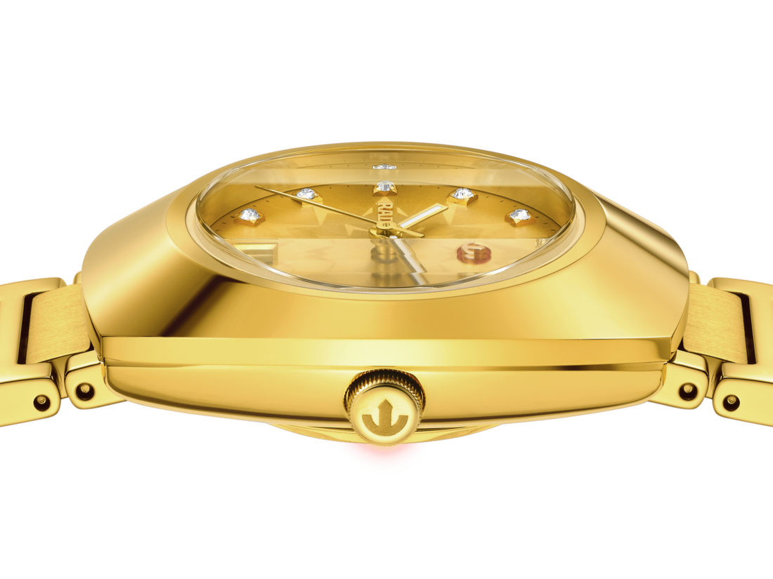 This DiaStar Original offers a brand new, smaller size that completes an already iconic family. Its 30 mm diameter is larger than the 27 mm of its hard-metal counterpart, but strikes the perfect balance for the modern tastes of watch lovers. Its Ceramos™ bezel provides lightness and one of the highest levels of scratch resistance, a characteristic further enhanced by the sapphire crystal glass covering the dial. The latter, a yellow gold sunray featuring a sandblasted star pattern, is enriched by 11 crystal stones and a date window at six o’clock. The bracelet, middle links, and 3-fold clasp are made of PVD-coated stainless steel and feature a mix of polished and brushed gold colours. A 48-hour power reserve, antimagnetic Nivachron™ hairspring and testing and adjustment in five positions complete what is a true crown jewel.
