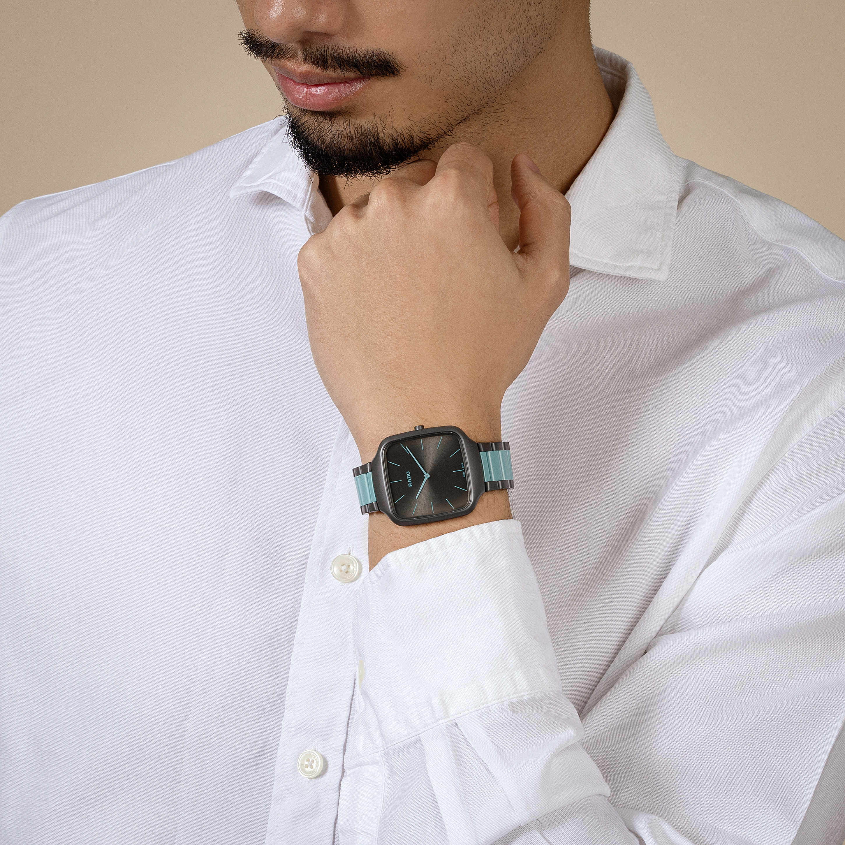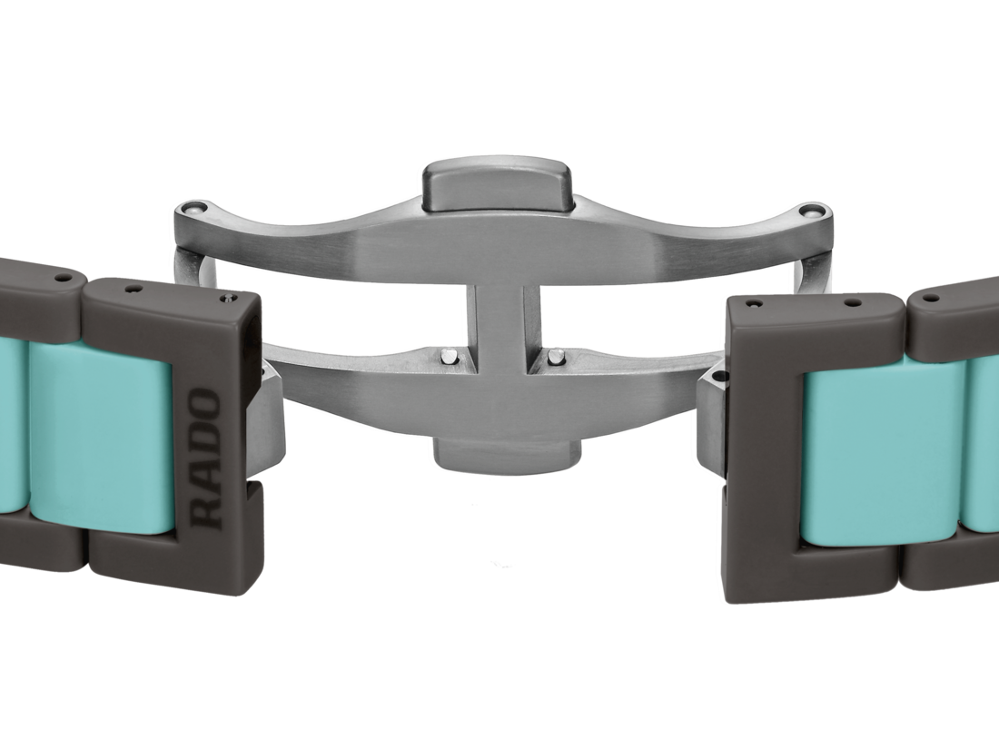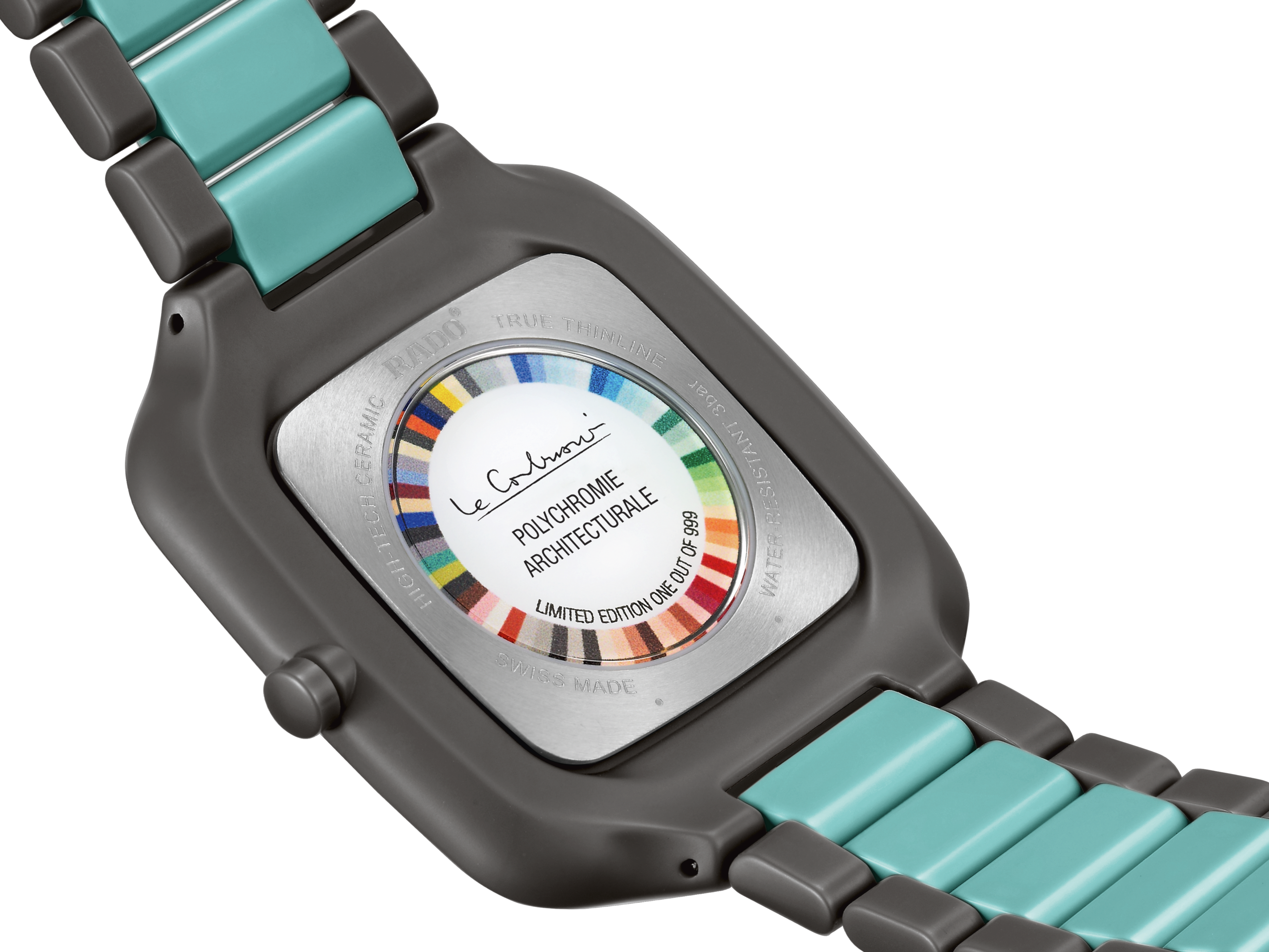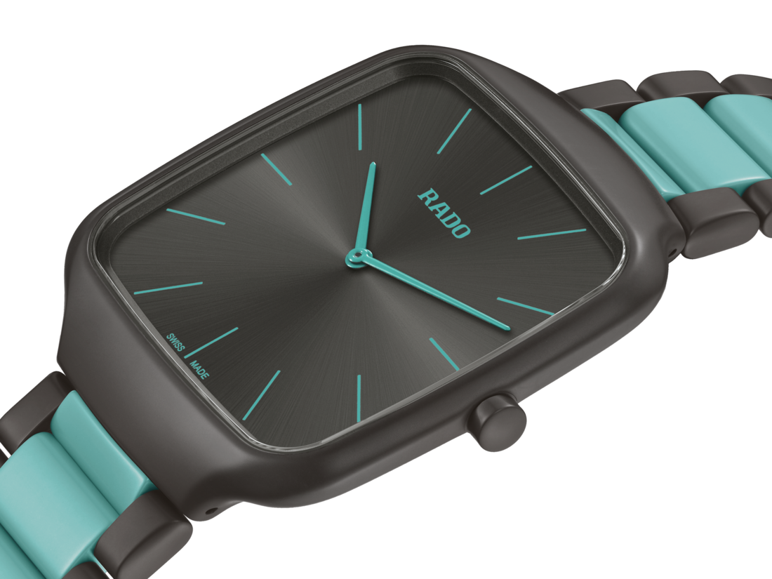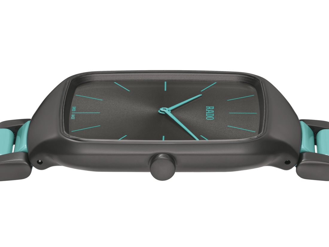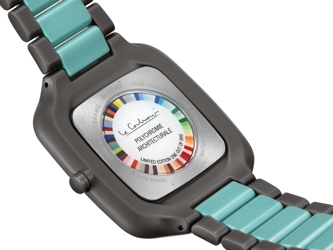 Experience the harmonious blend of artistic expression and Swiss precision with the Rado True Square Thinline x Les Couleurs™ Le Corbusier watch. This exceptional timepiece pays homage to the iconic architectural colours of Le Corbusier. Powered by a reliable Quartz Rado calibre R420 movement, this watch ensures precise timekeeping with effortless elegance. The 37 mm case size strikes the perfect balance between style and wearability, making it suitable for any occasion. The matt iron grey high-tech ceramic case and crown exhibit a bold and contemporary aesthetic, embodying the essence of modern design. With its monobloc construction and flat sapphire crystal, this watch exudes durability and timeless elegance. The dial features a mesmerising sun brushed iron grey, while the slightly greyed English green hands and indexes elegantly sweep across the dial, ensuring legibility and enhancing the watch’s visual appeal. Crafted with precision, the matt iron grey and slightly English green high-tech ceramic bracelet complements the case, creating a seamless and cohesive look. Limited to just 999 pieces, this watch offers exclusivity and a sense of rarity.