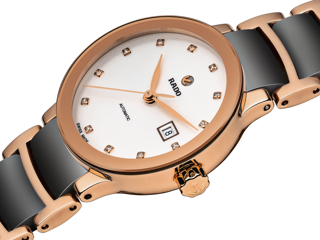The Rado Centrix Automatic Diamonds proves its versatility in a range of different sizes and colour combinations, all with the glamorous sparkle of diamonds on the dial, guaranteeing that there is a model to suit all tastes. With Rado’s signature sapphire crystal adding scratch-resistant shine, these watches are designed to look good for life.