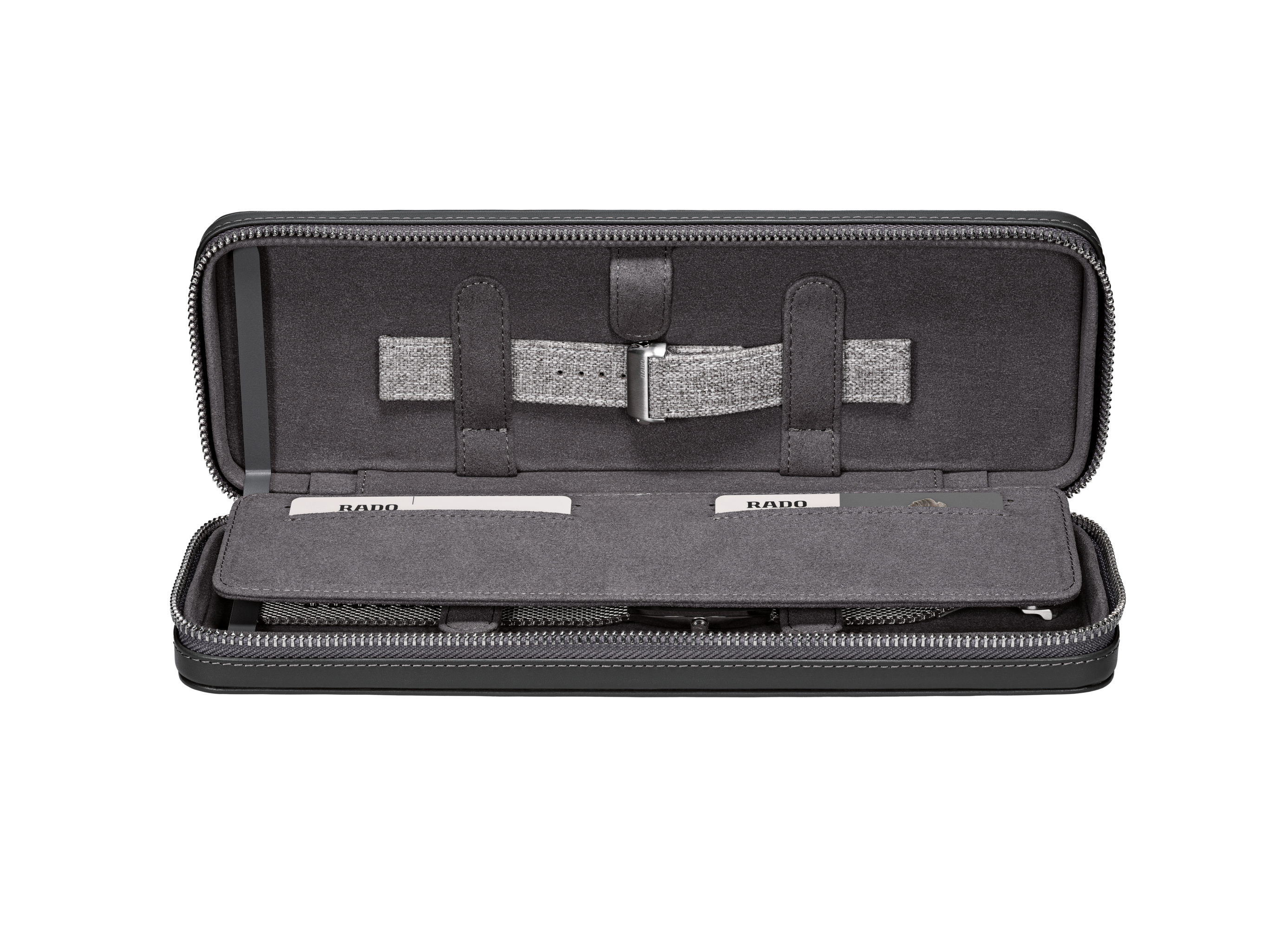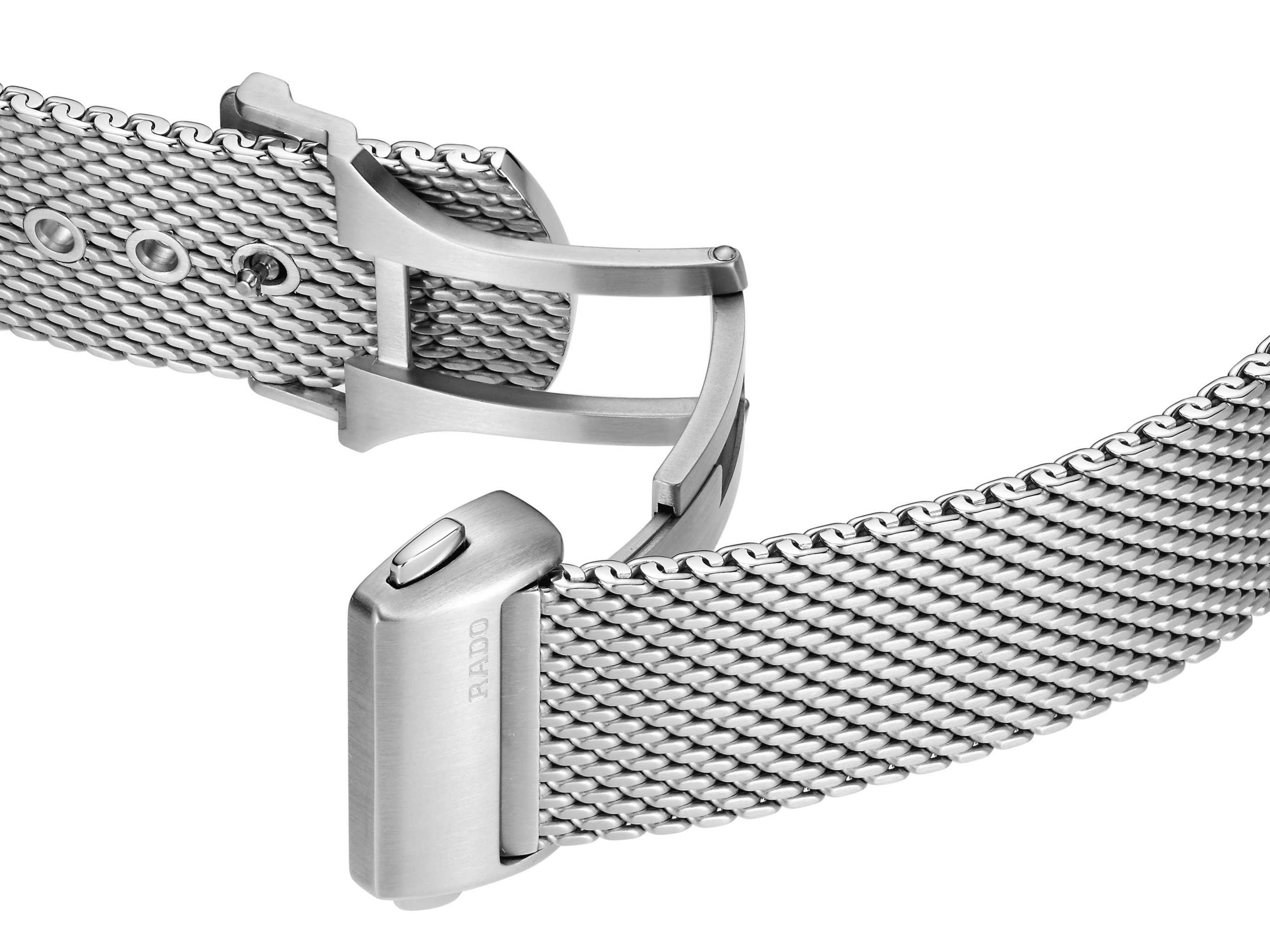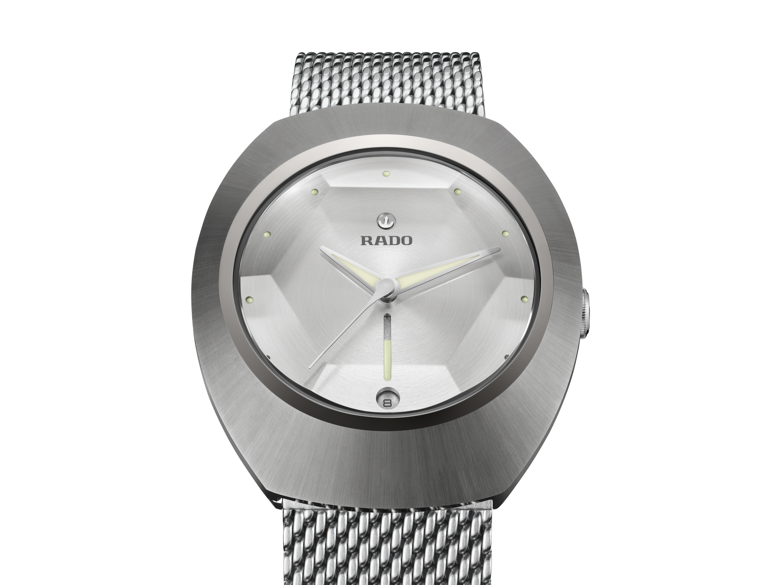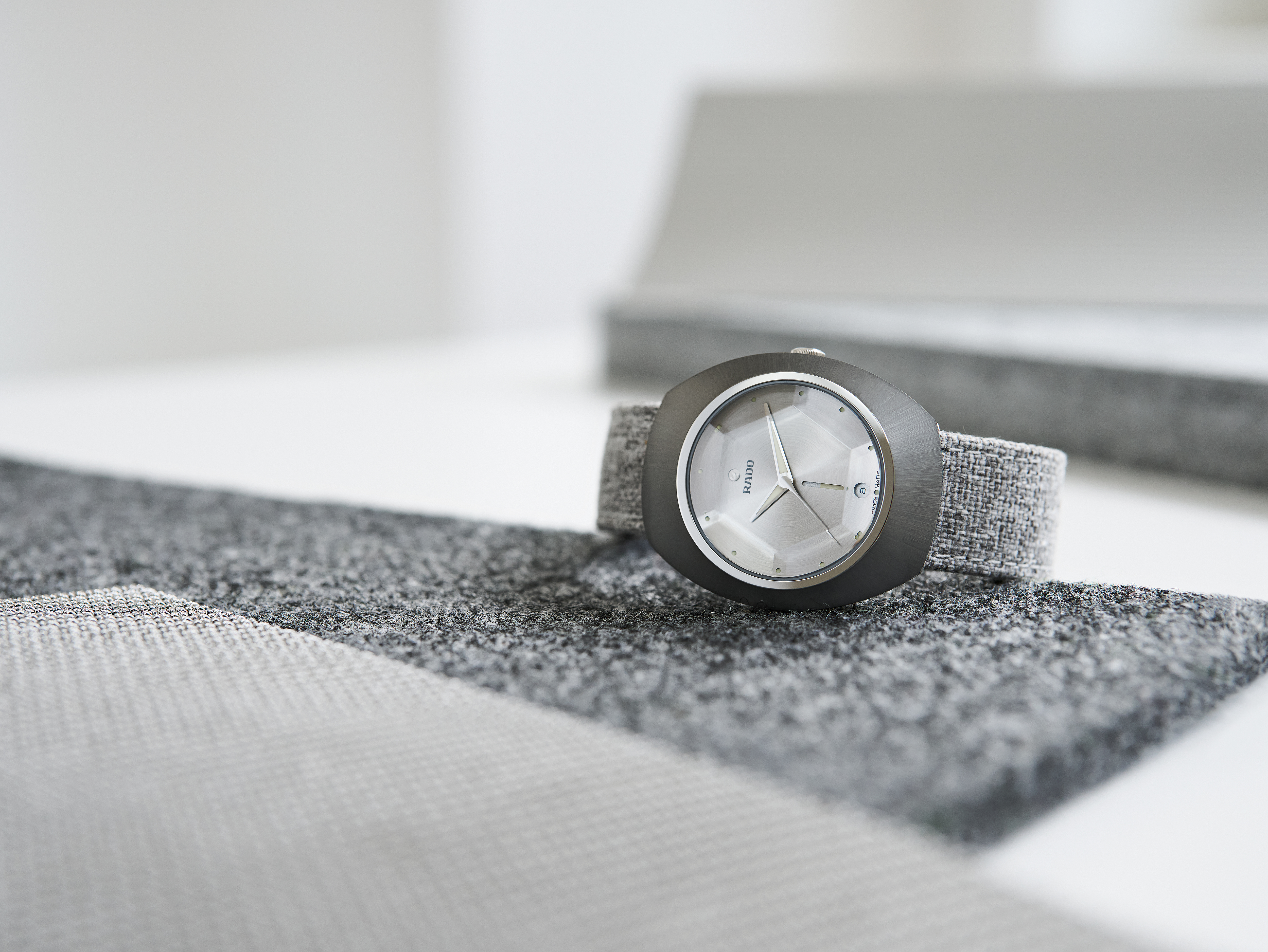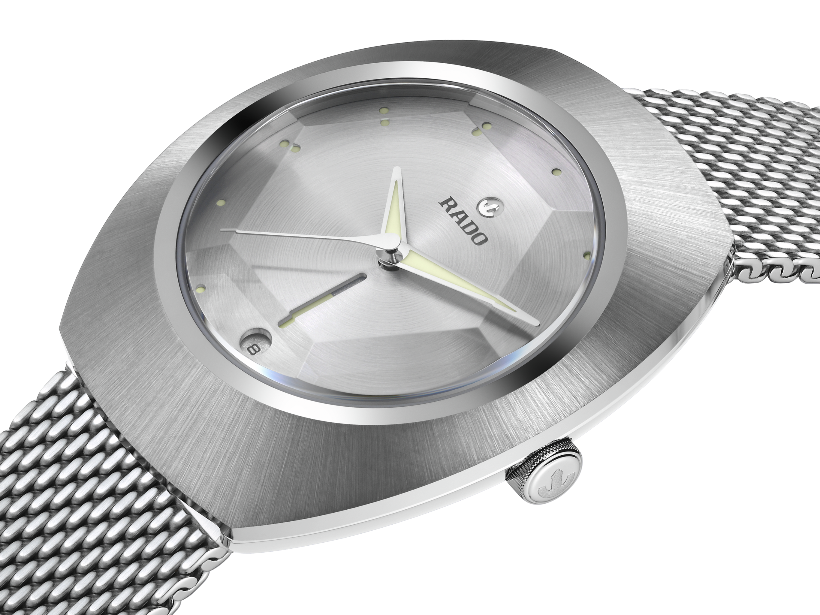 The DiaStar Original 60-Year Anniversary Edition has been created in collaboration with the Swiss designer Alfredo Häberli. Framed by a radial-brushed Ceramos™ coiffe with polished angles and detailing set over a matching, monochrome stainless steel case, the watch also features a sapphire crystal with hexagonal facets to mark six decades since the original watch. The case and dial are made in a monochromatic colour scheme, whereas the hands and hour markers are coloured with a touch of Super-LumiNova®. Inside, the Rado R764 automatic movement with 80 hours of power reserve ensures reliable and precise timekeeping. The watch has a diameter of 38 mm and is water resistant to 100 m. It stands for dependability, lasting beauty and endless wearing pleasure. This edition is delivered in a stylish grey pouch with a woven stainless-steel mesh “Milanese” bracelet, as well as a mottled grey textile strap: the EasyClip system makes interchanging for a different look effortlessly quick.