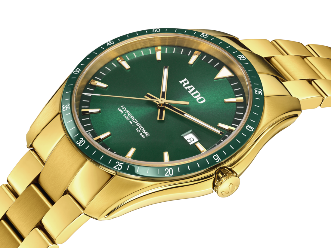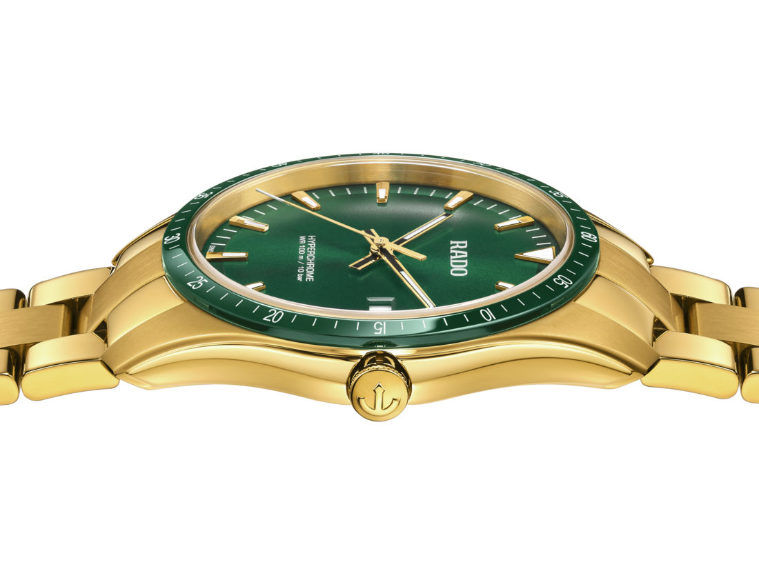 Dynamic, sleek and sporty, the HyperChrome Quartz is designed to look good dressed up or dressed down. With its bezel in green High-Tech Ceramic, the HyperChrome Quartz is an elegant chameleon.