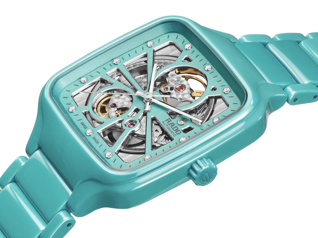 Experience the perfect fusion of artistry and precision with the Rado True Square Automatic Open Heart watch. This remarkable timepiece showcases a captivating open-heart design, allowing you to admire the intricate movements of the automatic Rado calibre R734, with its 80-hour power reserve. With a 38 mm case size, the turquoise high-tech ceramic case and crown exude a sleek and contemporary allure. The flat sapphire crystal, with anti-reflective coating on both sides, offers exceptional clarity. The turquoise dial is accentuated by silver-coloured bevels. Twelve diamonds add a touch of luxury and sophistication. The rhodium-coloured hands, enhanced with white veneer and white Super-LumiNova®, ensure excellent visibility, while adding a subtle touch of elegance. Completing the ensemble is the polished turquoise high-tech ceramic bracelet, offering both comfort and durability.