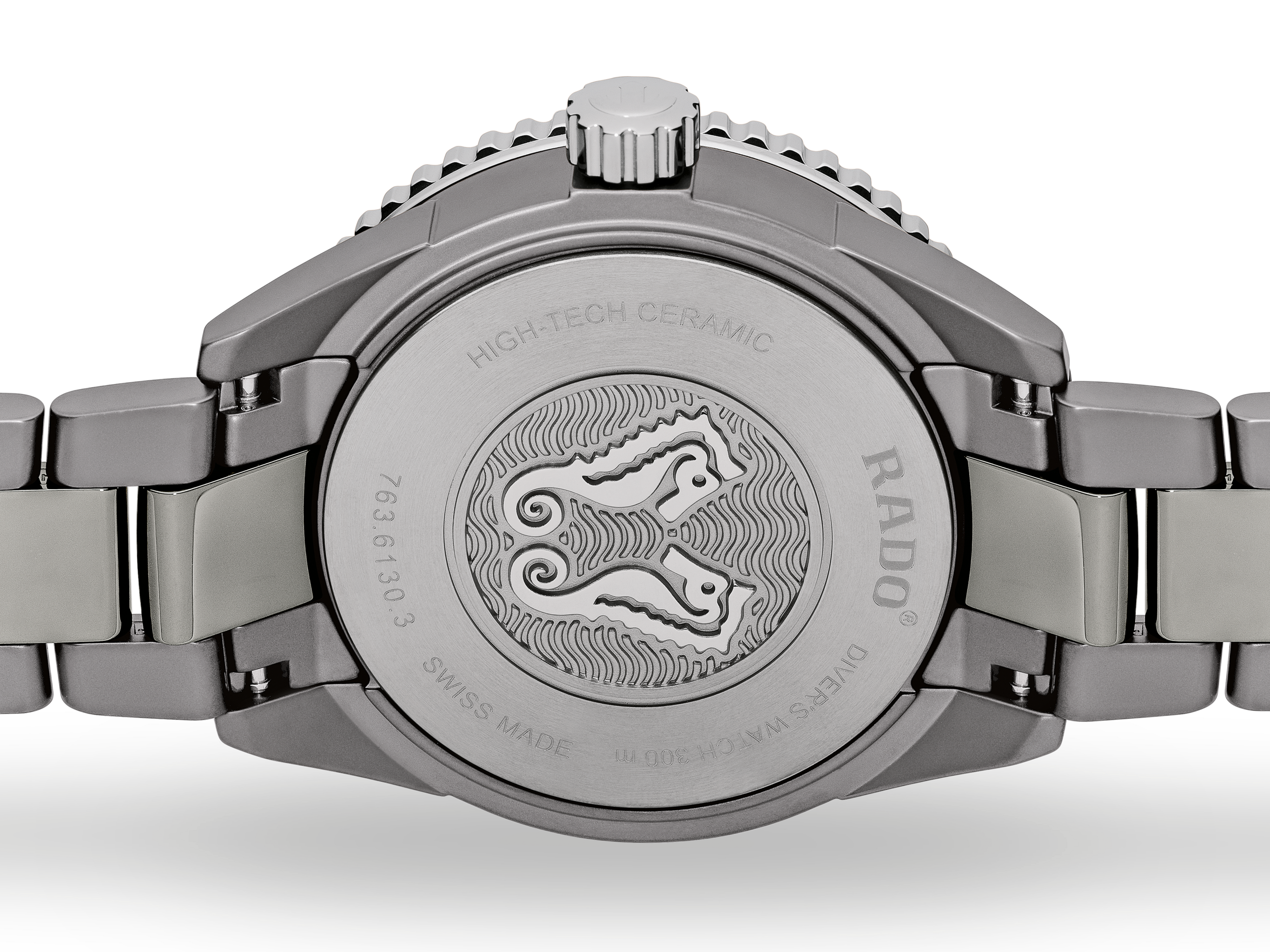 The Captain Cook High-Tech Ceramic Diver watch is water resistant down to 300 m. The hands and indices of the ISO 6425 certified diver's watch are coated with SuperLuminova® to ensure excellent visibility on the blue lacquered and polished dial. The 43 mm monobloc case is made of matte plasma high-tech ceramic, while the rotating bezel is made of polished stainless steel. Inside, the Rado R763 automatic movement exceeds standard accuracy test requirements from 3 to 5 positions and offers 80 hours of power reserve. This model comes with a polished, plasma, high-tech ceramic bracelet. Whatever your field of exploration is, your Captain Cook High-Tech Ceramic Diver will be a reliable and solid partner at your side for years to come.