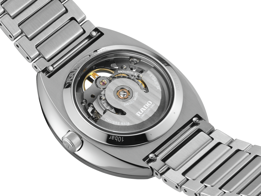 La DiaStar Original Skeleton présente une autre version du calibre automatique R808 de haute qualité, revêtu de gris anthracite et complété de divers éléments dans ses rouages offrant une élégante danse visuelle de contrastes. Grâce à ses ouvertures en verre saphir à l’avant et à l’arrière, le mouvement automatique se dévoile dans toute son élégance technique, avec sa réserve de marche de 80 heures. À l’intérieur, un spiral en Nivachron™ amagnétique veille à la précision et à la fiabilité extrêmes de ce mouvement qui a été testé dans les cinq positions. Sa structure ouverte et son impressionnant mouvement squelette R808 apportent une touche plus légère et aérienne à la nouvelle DiaStar Original, un véritable contraste de design à l’intérieur du cadre visuel créé par la lunette en Ceramos™. La teinte plus foncée est joliment mise en valeur par les aiguilles et les index flottants couleur or jaune avec Super-LumiNova® blanc pour une excellente lisibilité même dans l’obscurité.