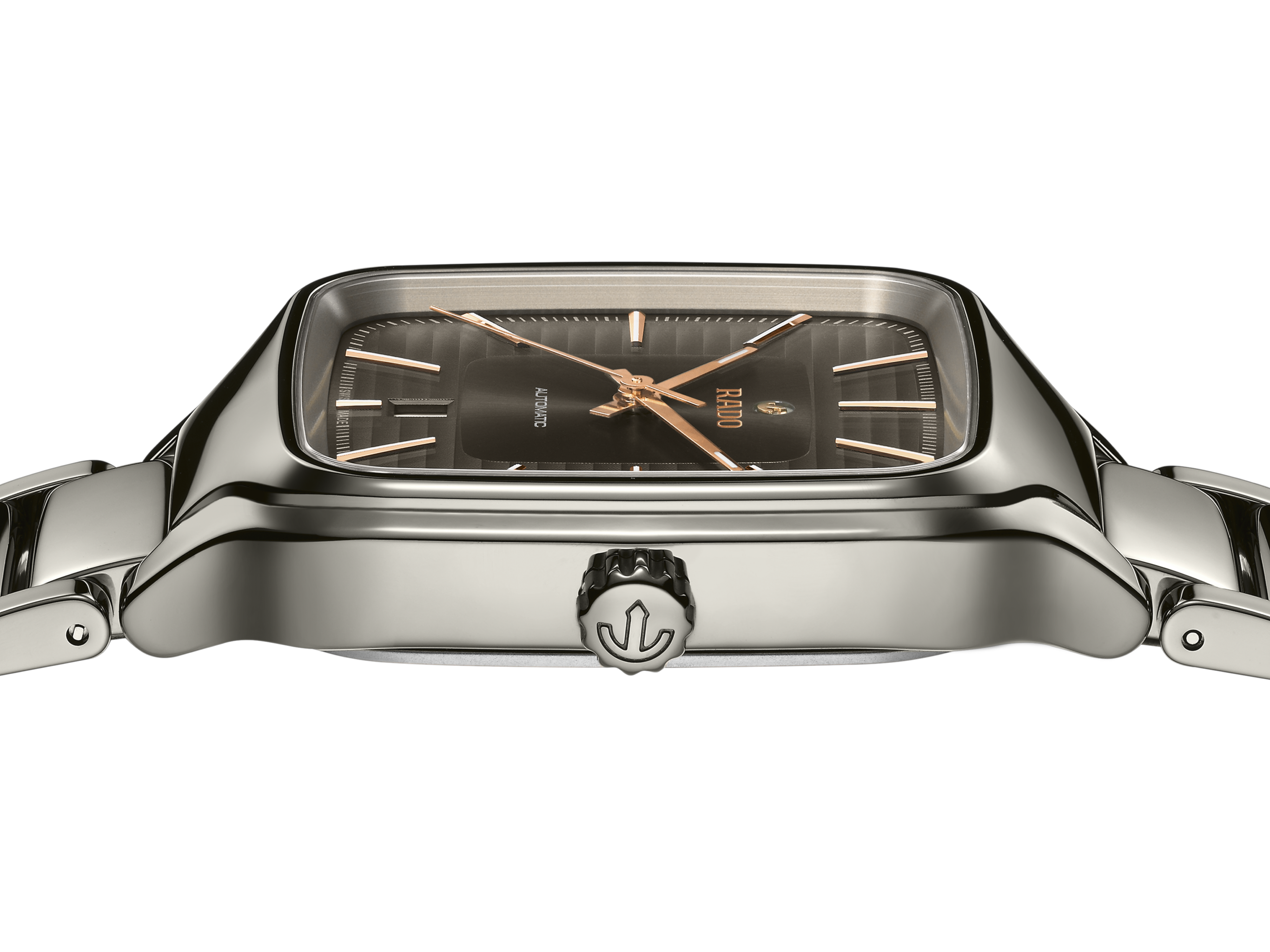 Il True Square ha un diametro di 38 mm ed è composto da una cassa e una corona in ceramica hi-tech al plasma lucida e da un cristallo zaffiro piatto. Grazie al movimento automatico Rado R763, l'orologio scandisce il tempo con precisione e affidabilità. Le sfere e gli indici color oro rosa con Super-LumiNova® bianca si abbinano perfettamente al quadrante che vanta un motivo orizzontale stampato di colore grigio. L'orologio è dotato di una riserva di carica di 80 ore e dispone di un'impermeabilità fino a 5 atmosfere. Il piacevole comfort del True Square è assicurato da un bracciale in ceramica hi-tech al plasma lucida con fibbia in titanio a tripla piega.