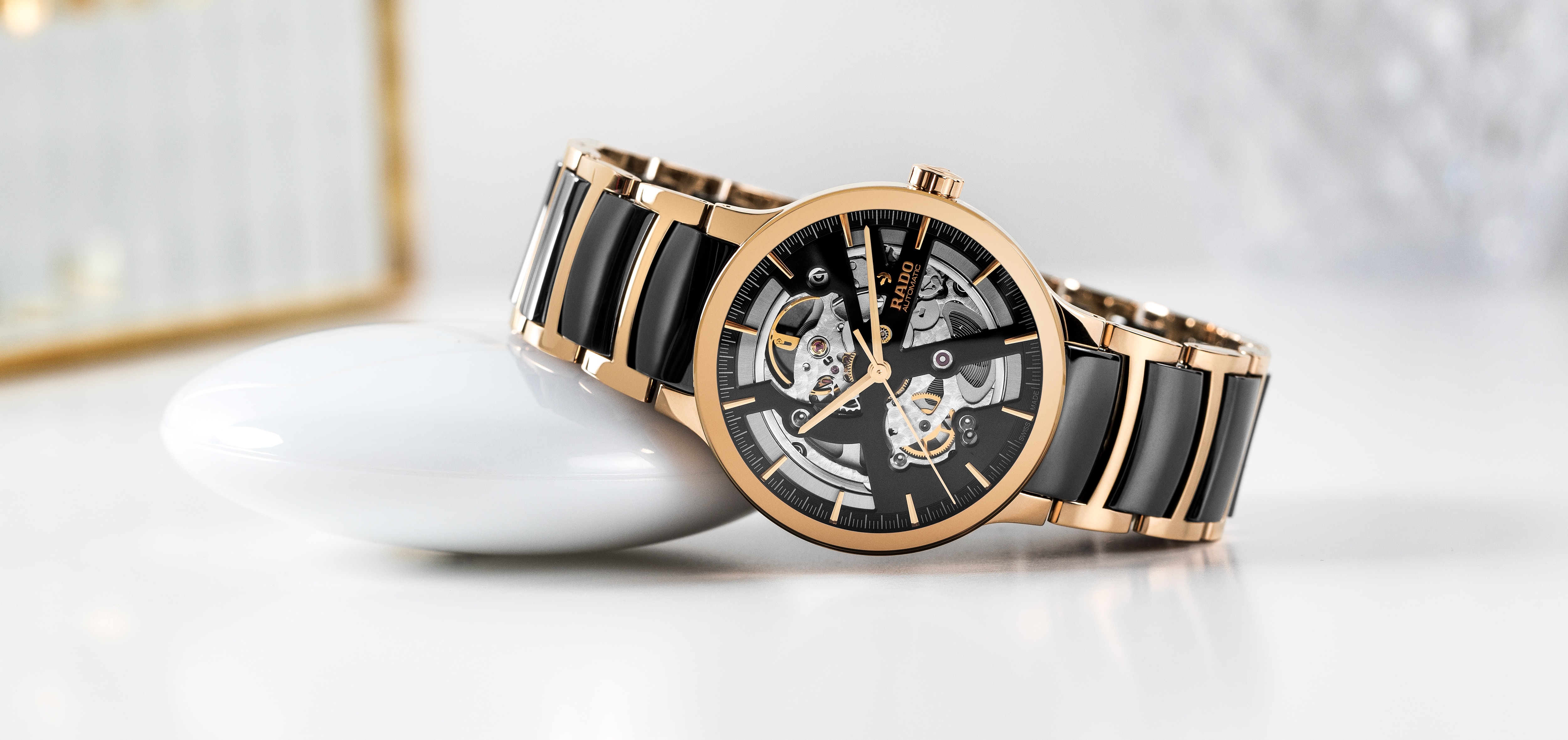 Model Rado Centrix charakteryzuje się lekką, zwężaną bransoletą, która delikatnie otula nadgarstek, zapewniając niezwykłą wygodę. Uniwersalny styl tego zegarka dodaje nutę elegancji, luksusu i wyrafinowania bez kompromisów każdej osobie, która go nosi.