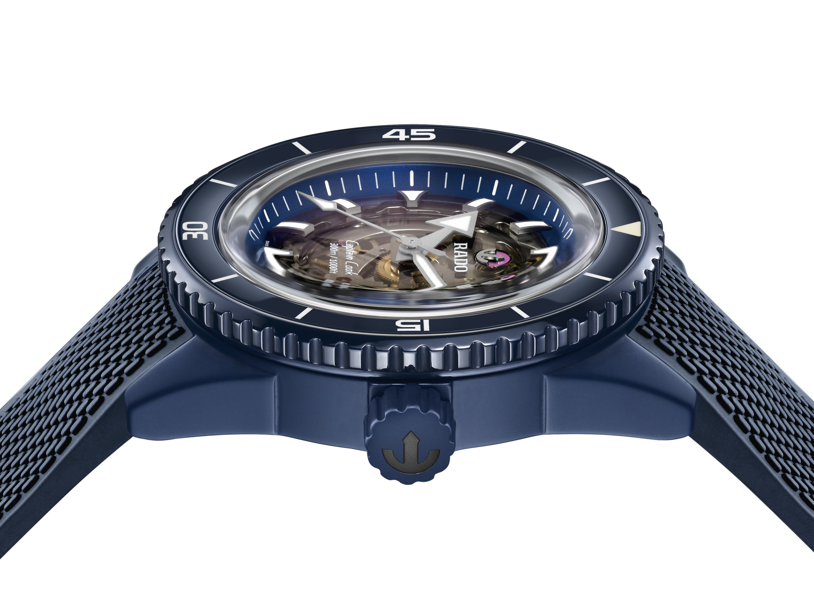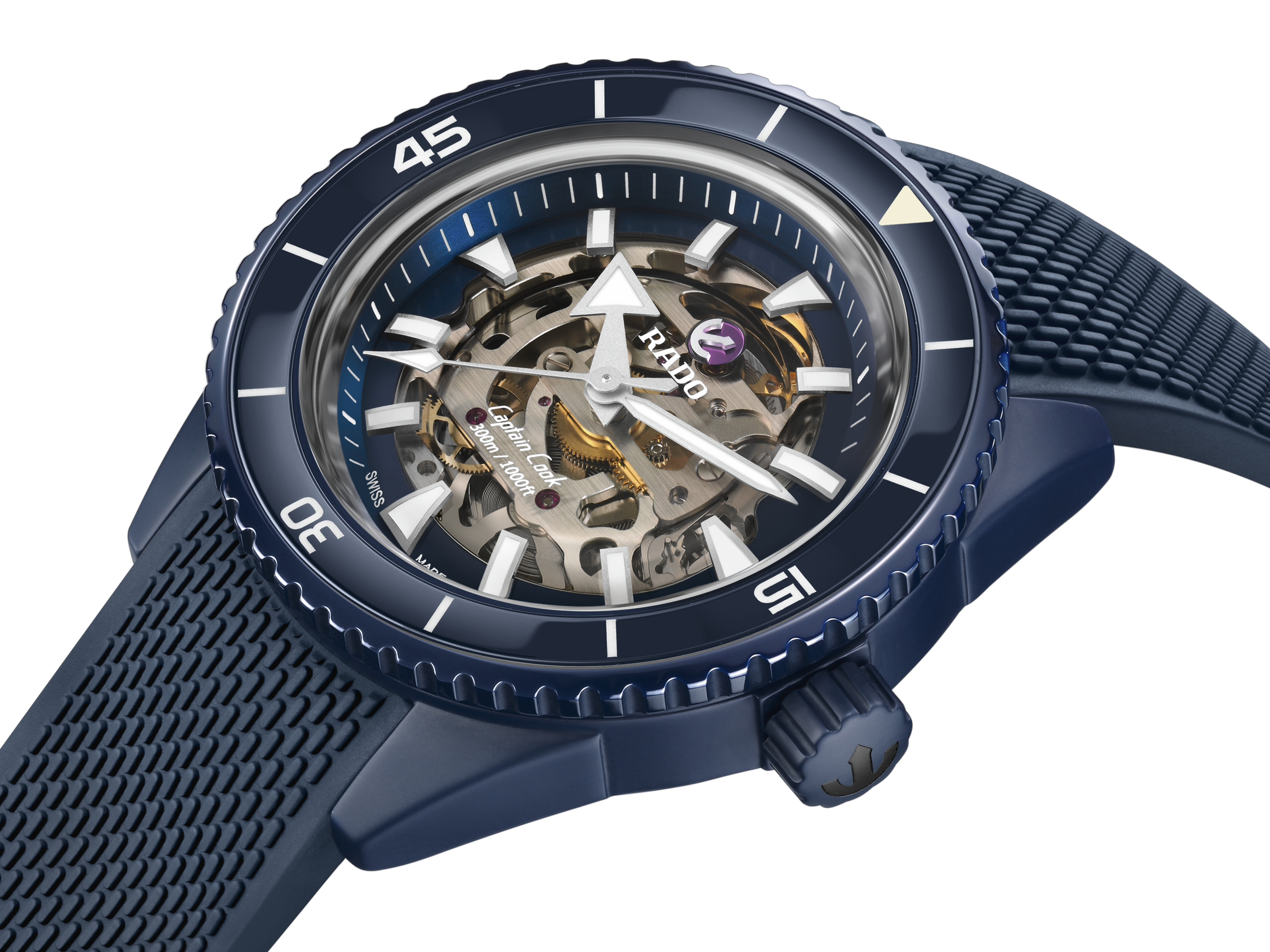 The companion Captain Cook High-Tech Ceramic Skeleton, a model appreciated for its adventurous character and rugged good looks, boasts a slightly different application of the new colour.