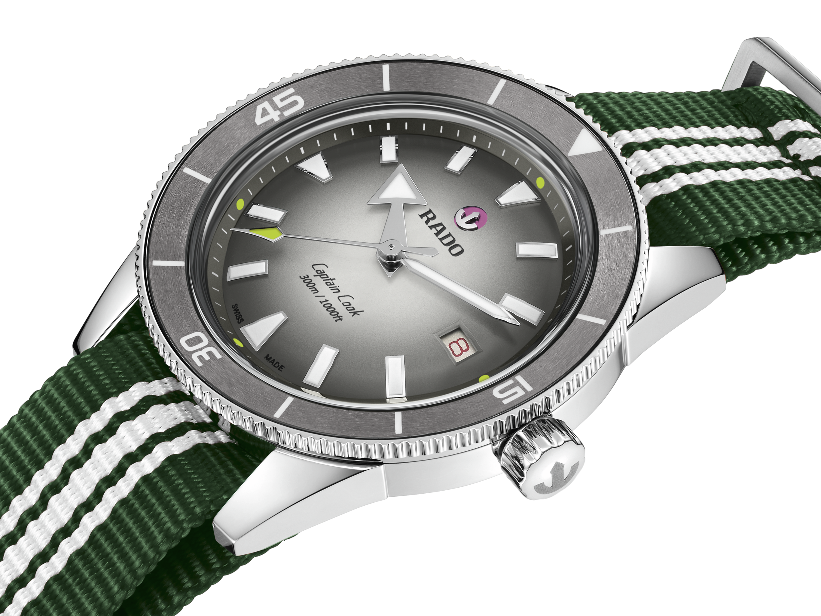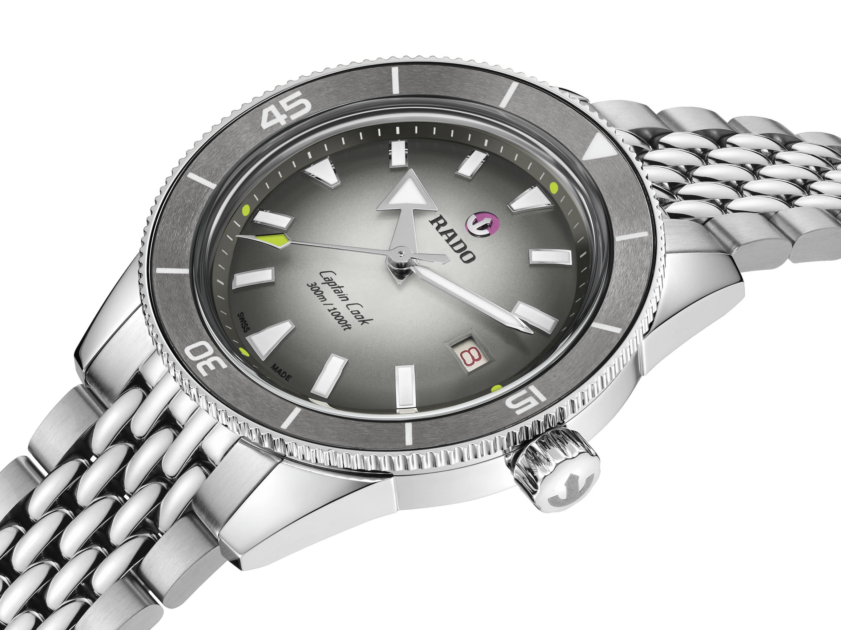 At its core beats the Calibre R763, a self-winding movement developed for uncompromising reliability. Engineered with 25 jewels and regulated in five positions, it ensures precise timekeeping under the most demanding conditions. The movement is equipped with an antimagnetic Nivachron™ hairspring. With a robust 80-hour power reserve, the R763 exemplifies technical mastery and mechanical resilience, embodying the spirit of Swiss engineering and Rado’s continued pursuit of horological excellence.