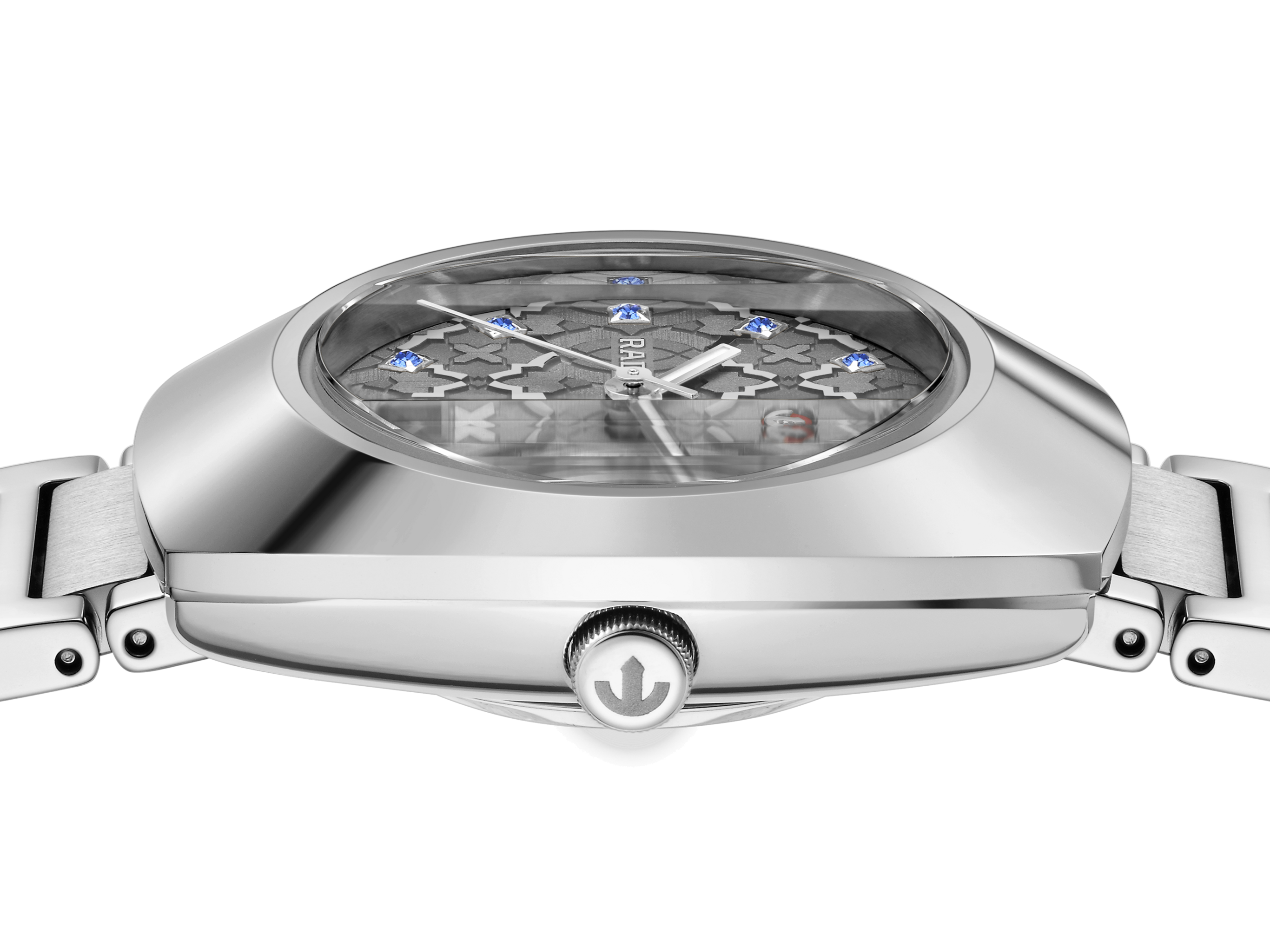 Powered by the Rado calibre R586 automatic movement with 48 hours of power reserve, an antimagnetic Nivachron™ hairspring and exceeding standard testing requirements, being tested and adjusted in five positions. Reliability and accuracy are assured. The movement features a date display.