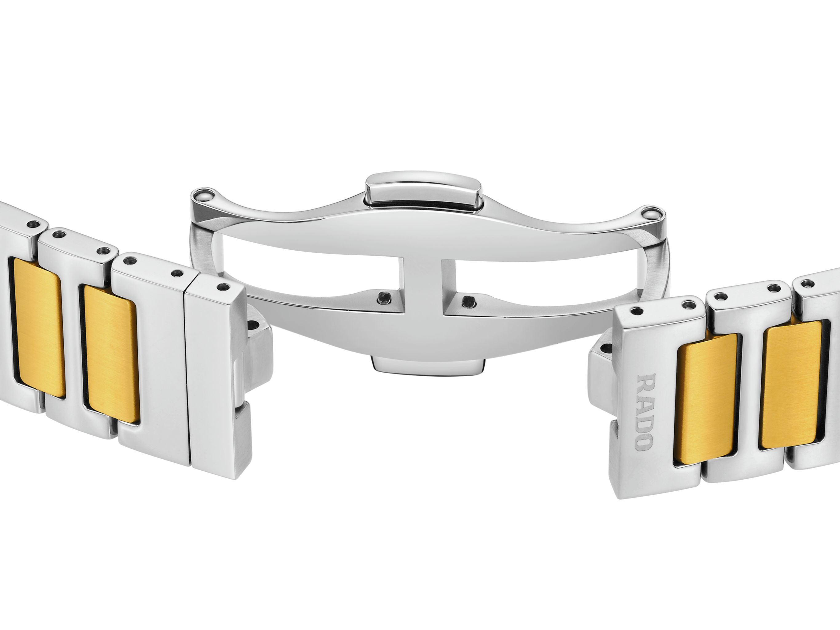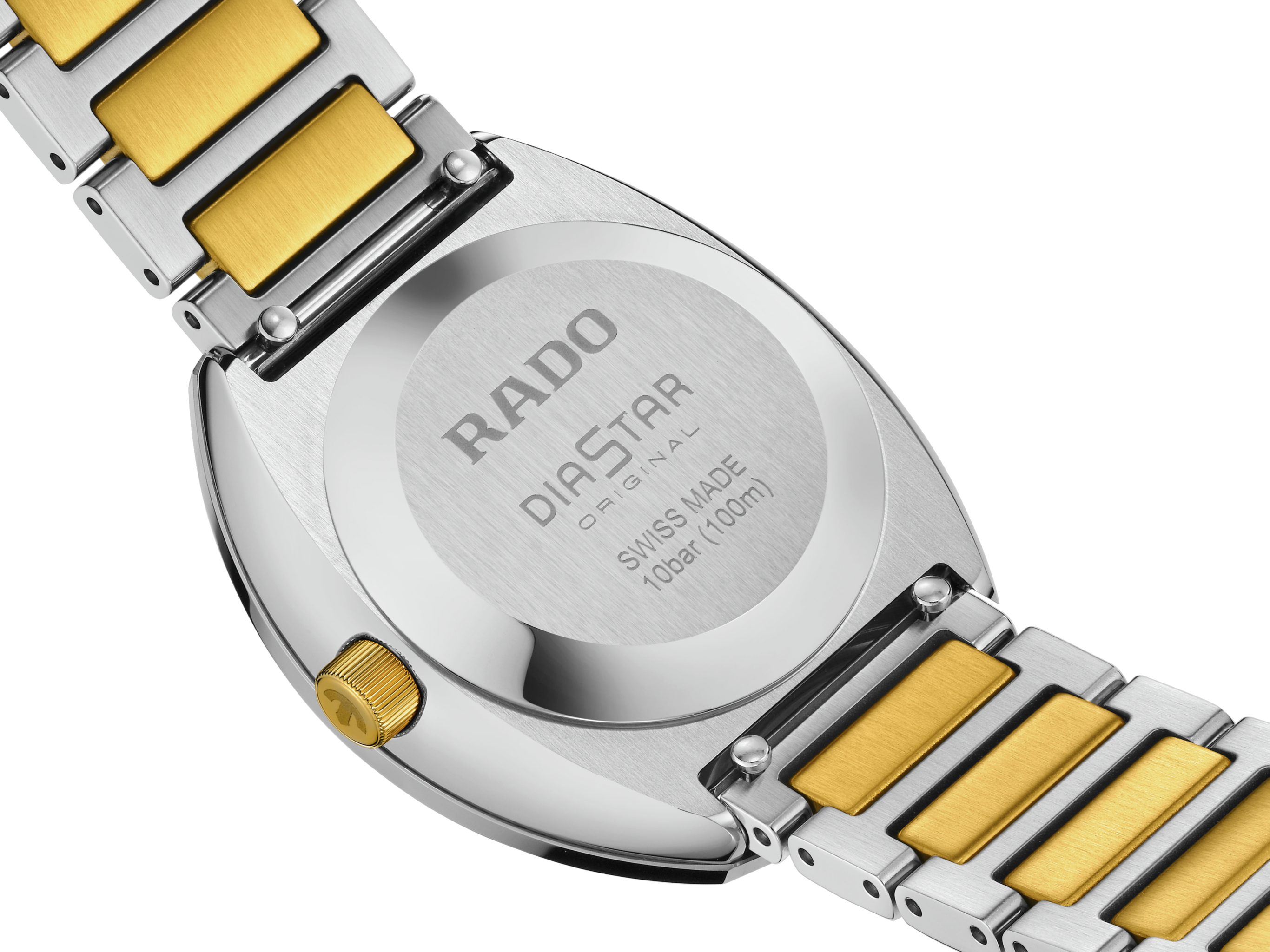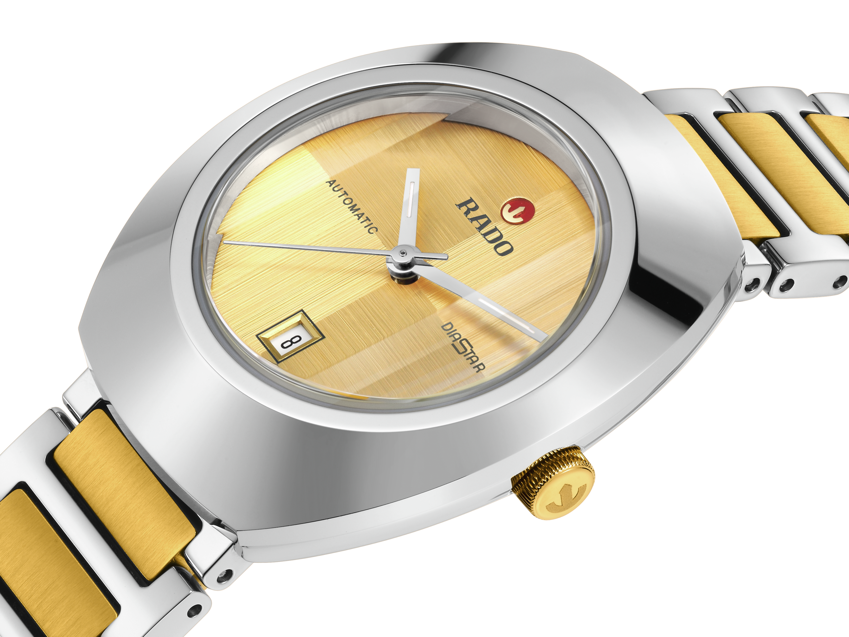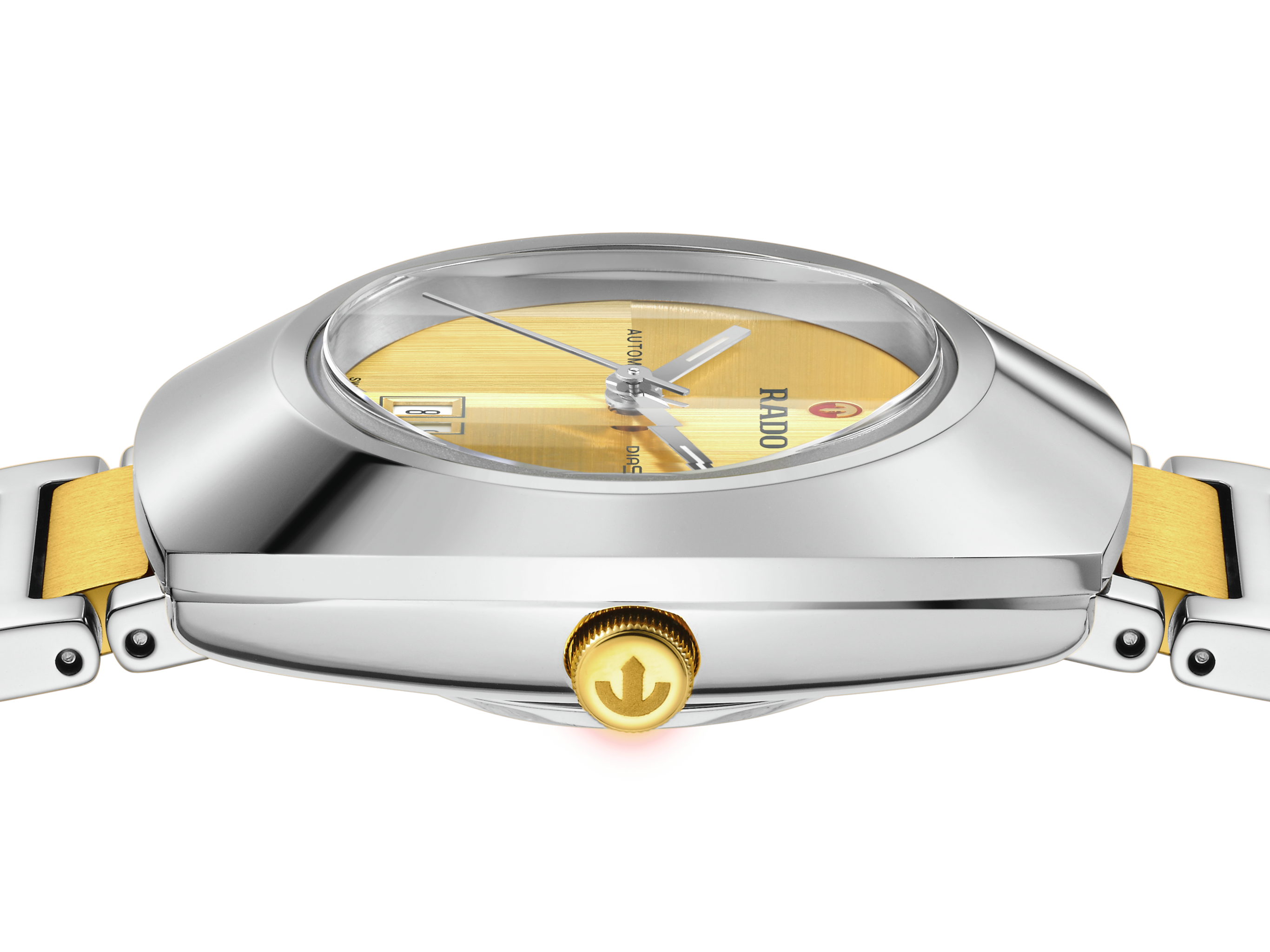 An iconic symbol of Swiss craftsmanship and pioneering innovation. The Rado Diastar is designed for those who dare to embrace the extraordinary. The 30 mm case, crowned by a polished platinum-coloured Ceramos™ bezel, merges effortlessly with a polished stainless-steel middle case, offering water resistance up to 10 bar (100 metres). The yellow dial, brushed in two directions, plays elegantly with light, highlighting the iconic gold-coloured moving anchor and a meticulously positioned date window at 6 o’clock. Rhodium-coloured hands with white Super-LumiNova® ensure perfect readability at all times. This refined display is safeguarded by vertical faceted sapphire crystal with anti-reflective coating inside. At its heart lies the automatic R586 calibre. Finely regulated in five positions and featuring a Nivachron™ hairspring, this movement delivers a high level of accuracy and 48-hour power reserve. The overall appearance of this iconic timepiece is completed with a stainless-steel bracelet, blending polished links and brushed yellow-gold coloured, PVD coated middle links, secured by a polished stainless steel 3-fold clasp.