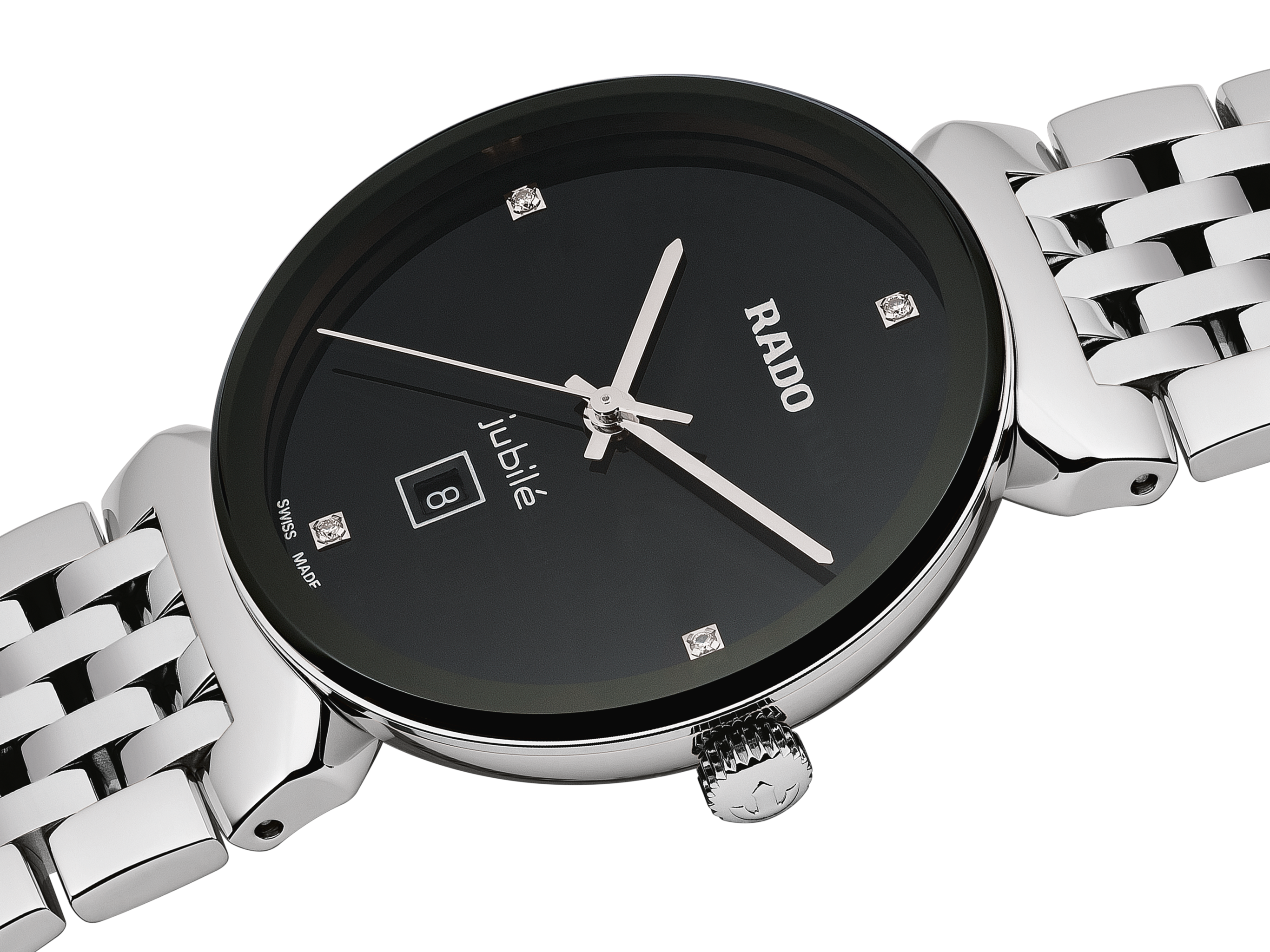 Гармоничный дизайн Rado Florence напоминает об элегантных силуэтах куполов и башенок города, чье название взято за основу названия этих часов. Благодаря качественному кварцевому часовому механизму и инновационному, полностью металлизированному сапфировому стеклу и неблекнущему сиянию бриллиантов, эти швейцарские часы с легкостью пройдут испытание временем. Стрелки с родиевым покрытием скользят по циферблату с бриллиантовыми делениями на 3, 6, 9 и 12 часов. Их сверкающее присутствие в новой коллекции Florence Classic подчеркивается возвращением логотипа Jubilé.