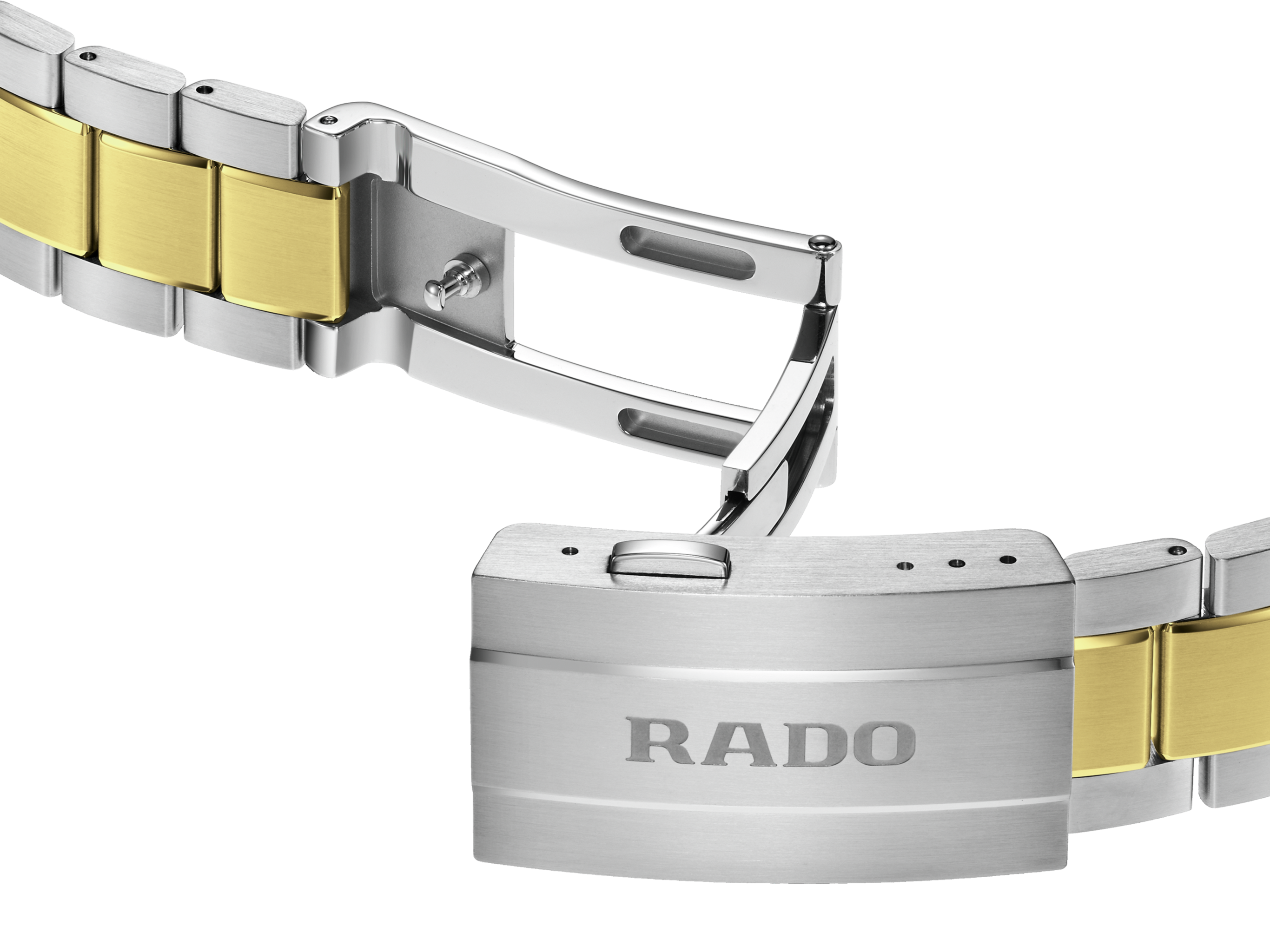 At the heart of the watch, the Rado calibre R292 ensures exceptional accuracy and reliability. This 3-jewel quartz movement combines PreciDrive and HeavyDrive technologies, enabling precise regulation of each impulse and maintaining a deviation of no more than ±10 seconds per year. A discreet date window at 3 o’clock integrates seamlessly into the dial’s balanced design.