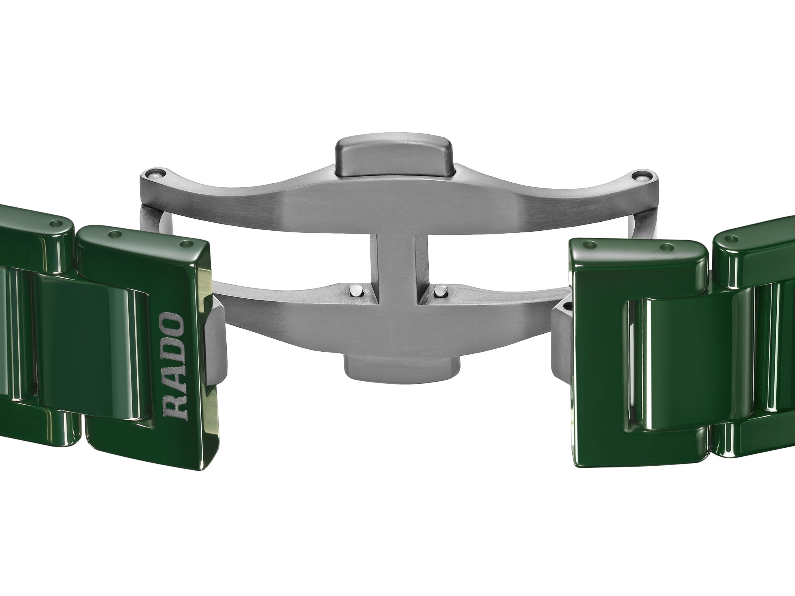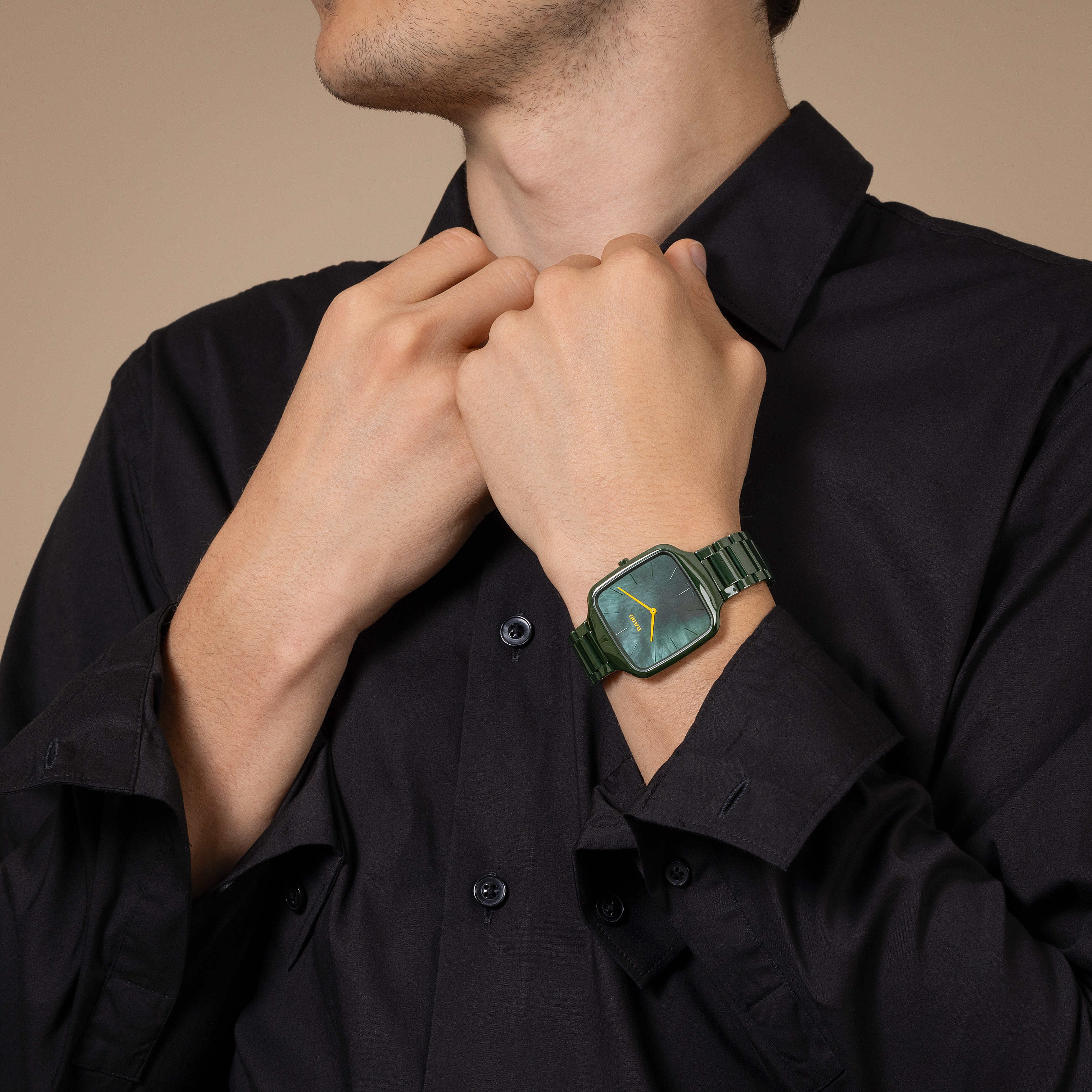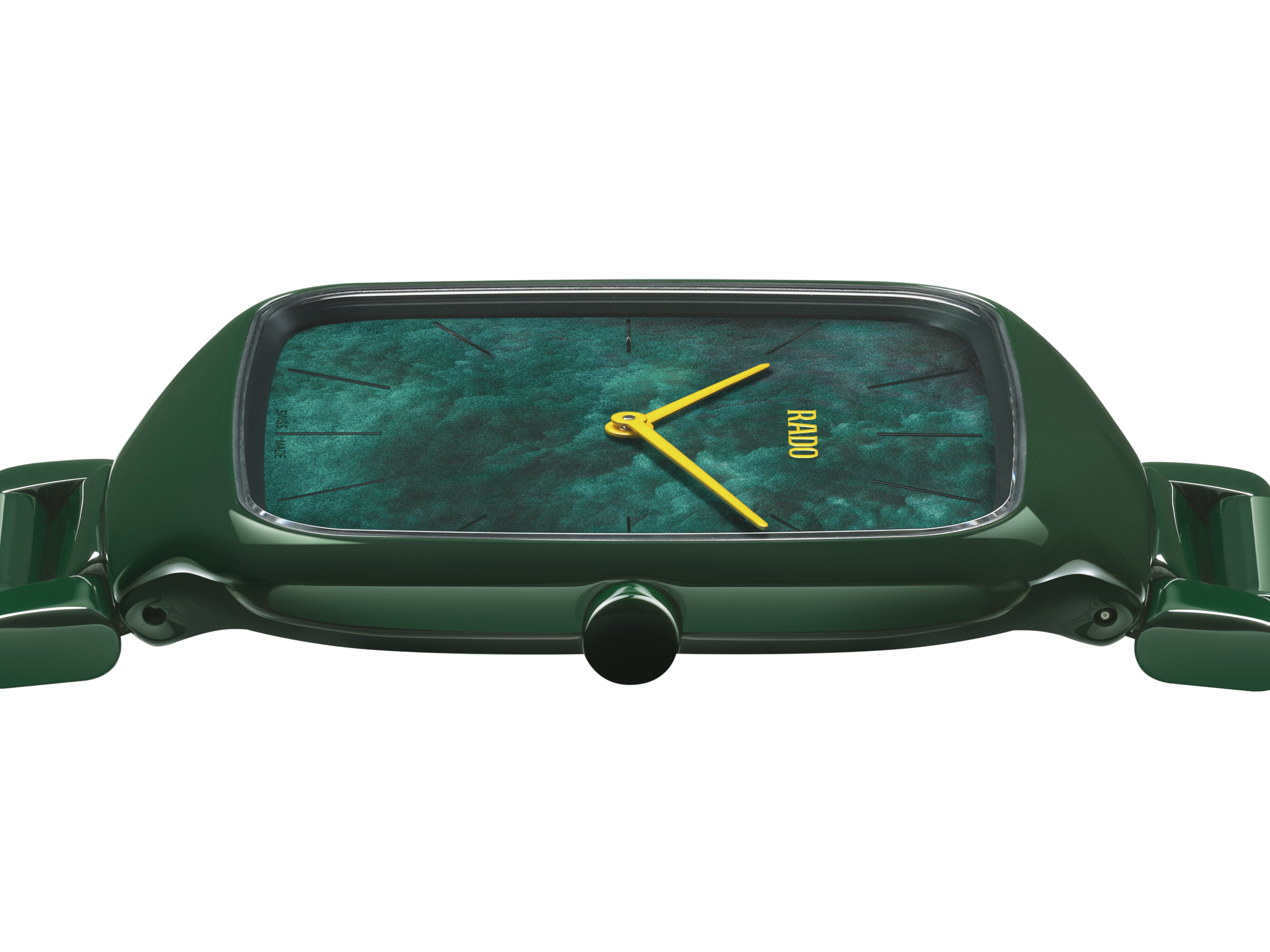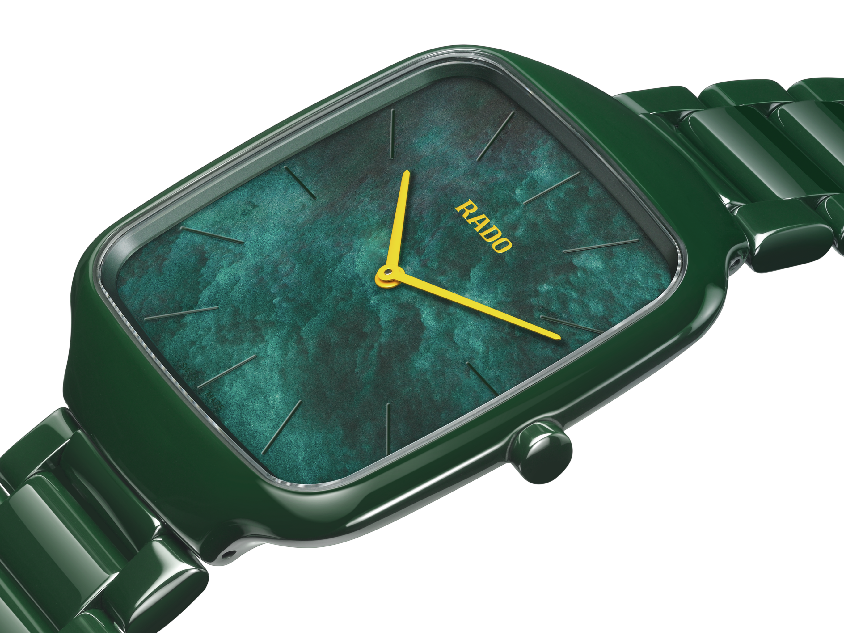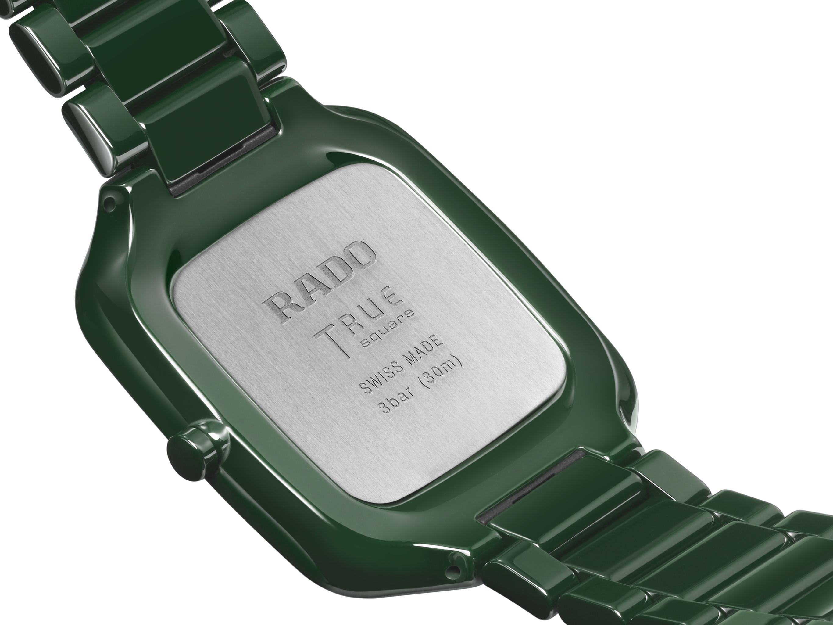 Experience the harmonious blend of artistic expression and Swiss precision with the Rado True Square Thinline. Powered by a reliable Quartz Rado calibre R420 movement, this watch ensures precise timekeeping with effortless elegance. The 37 mm case size strikes the perfect balance between style and wearability, making it suitable for any occasion. The polished green high-tech ceramic case and crown exhibit a bold and contemporary aesthetic, embodying the essence of modern design. With its monobloc construction and flat sapphire crystal, this watch exudes durability and timeless elegance. The dial features a green mother-of-pearl dial with yellow lacquered hands and yellow printed Rado logo. Crafted with precision, the polished green high-tech ceramic bracelet complements the case, creating a seamless and cohesive look.