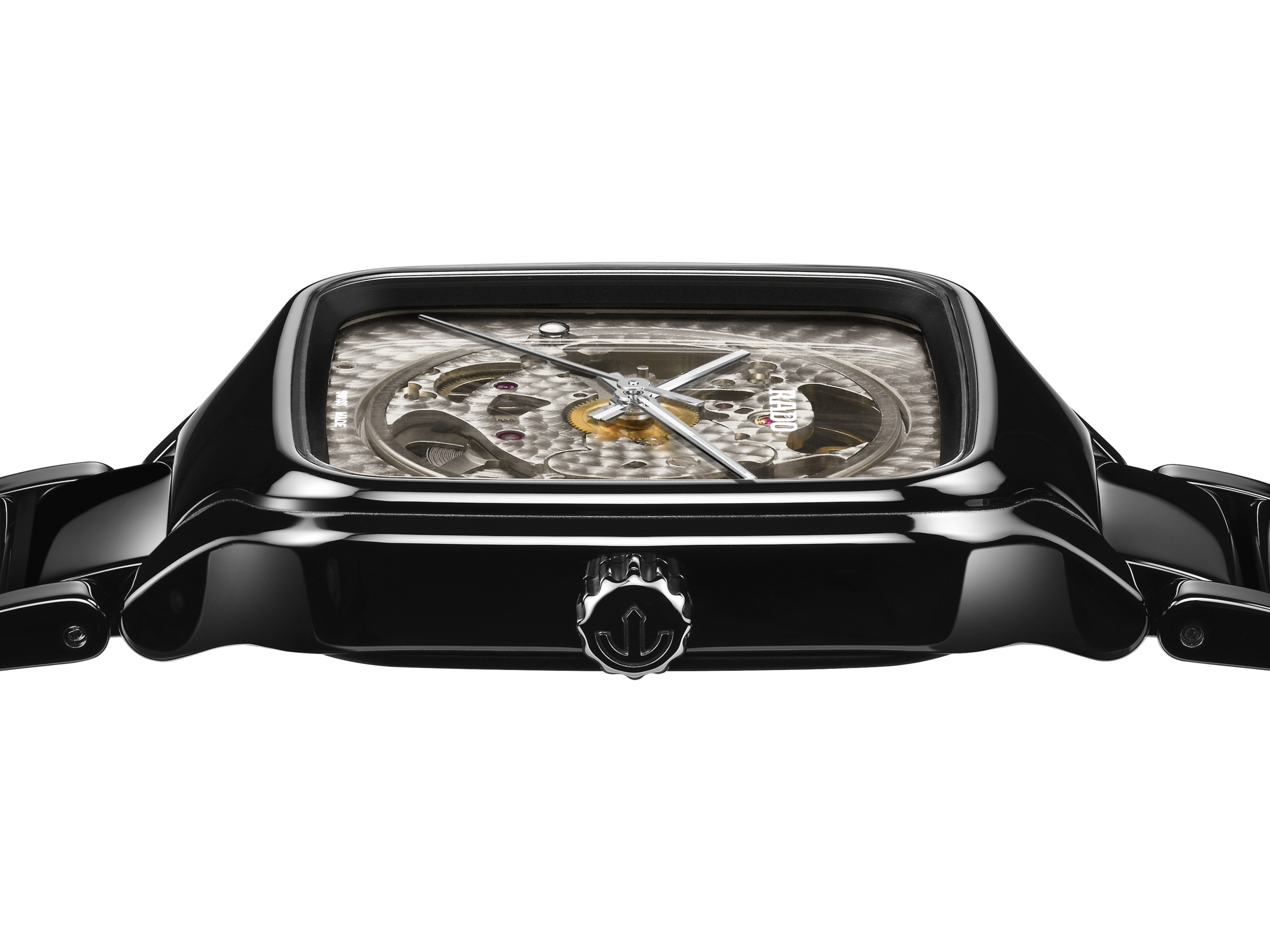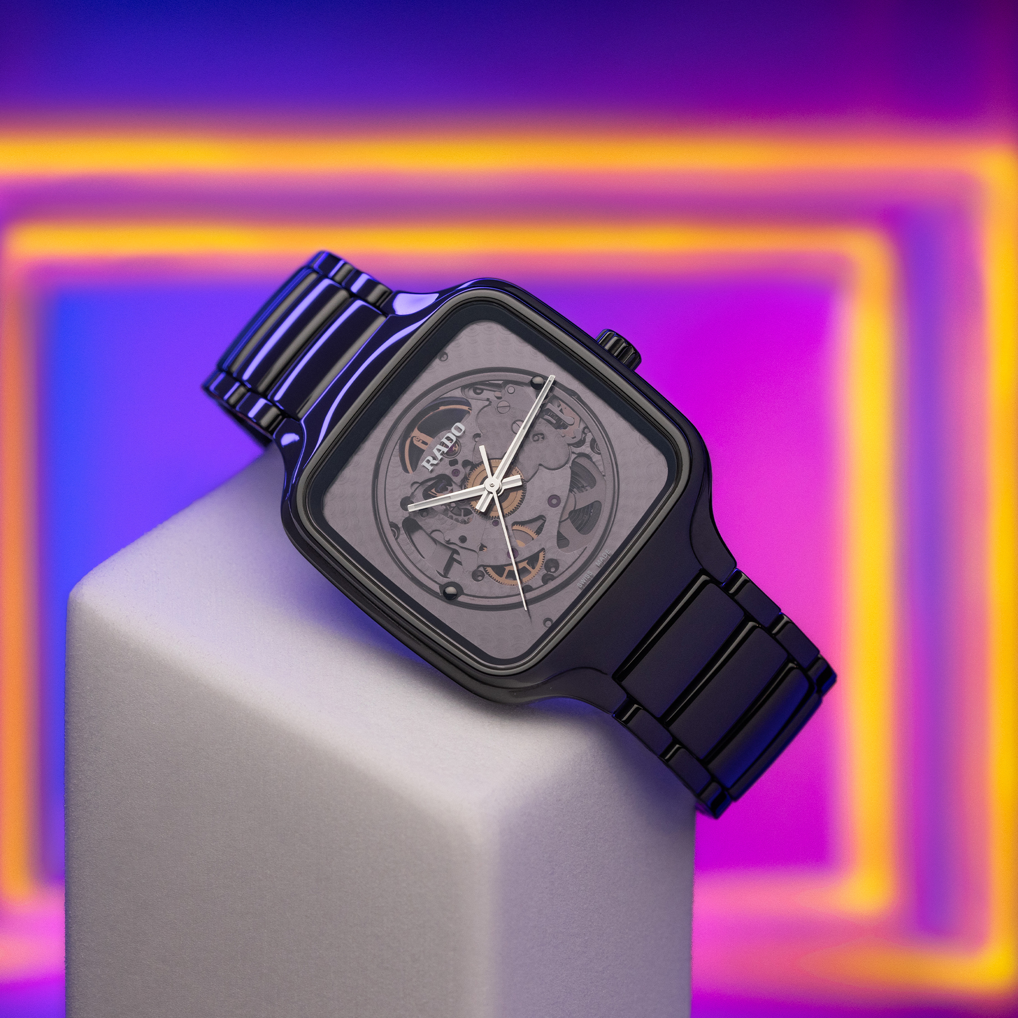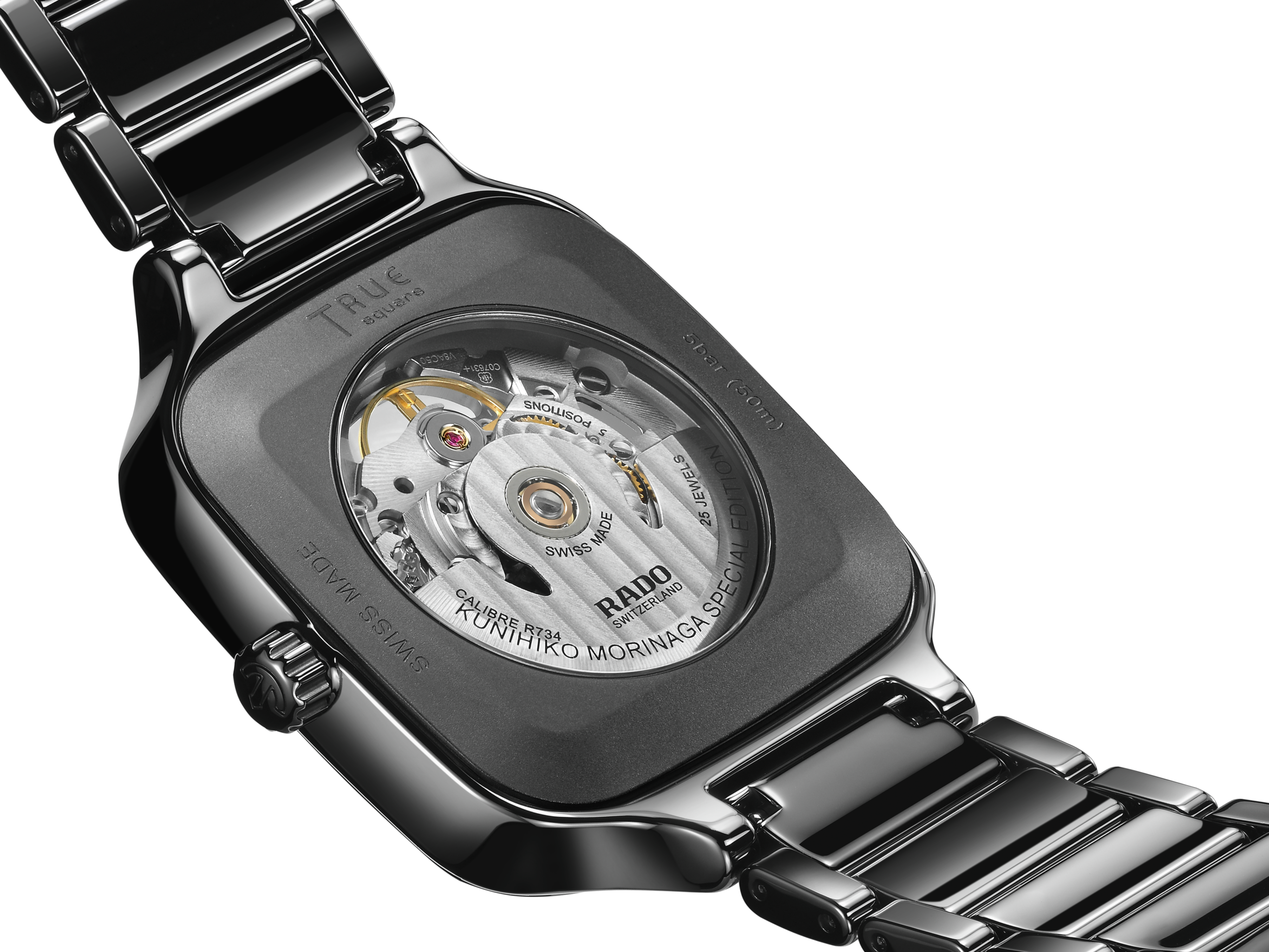 - When it is exposed to sunlight, the True Square’s dial darkens. But as the sun goes down – as it invariably does – the dial shade evolves into grey and finally becomes transparent, revealing the Rado calibre R734 at the heart of the watch.