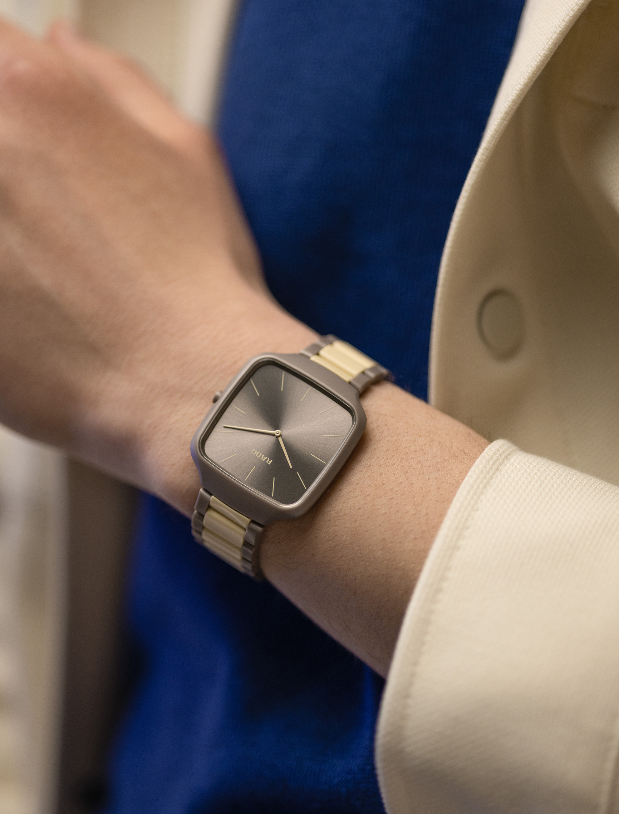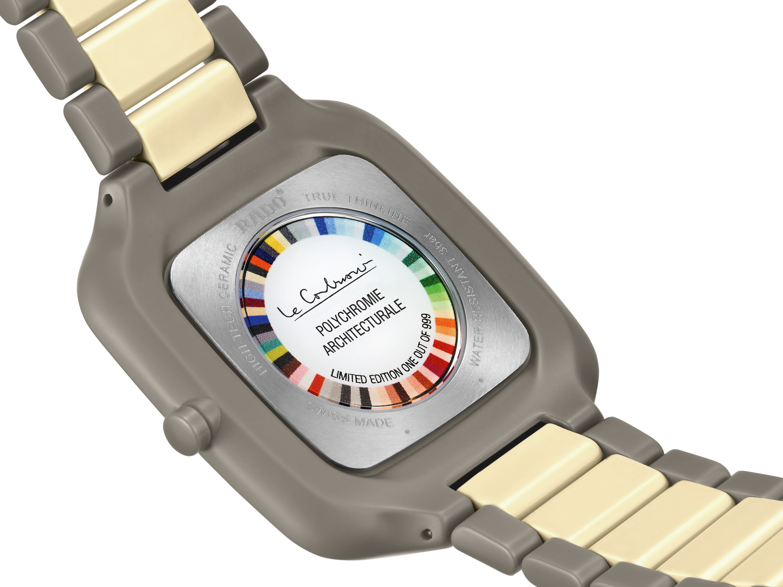 戴上Rado瑞士雷達表True Square Thinline x Les Couleurs™ Le Corbusier真我方形真薄幻彩系列腕錶,親身感受藝術表現與瑞士精準的完美結合。這款出色卓越的腕錶,是對勒·柯布西耶經典建築色彩學的獻禮。腕錶搭載可靠的Rado瑞士雷達表R420型石英機芯,確保精準走時之際,又從容優雅。採用37毫米的錶殼,完美兼顧風格與耐磨性,無論什麼場合都會是最佳之選。啞光灰褐棕色高科技陶瓷錶殼和錶冠展現出大膽又現代的美感,完美體現出當代設計的精髓。整體式構造設計及平面藍寶石水晶錶鏡,令腕錶散發出經久耐用且永恆典雅的氣息。錶盤上的灰褐棕色太陽紋拉絲流露著迷人色調,奶油白色指針和時標優雅地劃過錶盤,既能確保清晰易讀,又能提升腕錶的視覺美感。啞光灰褐棕色搭配奶油白色的高科技陶瓷錶鏈製作精巧,與錶殼相互襯托,展現出渾然一體且完美無缺的外觀。腕錶僅限量999枚,盡顯獨特與珍稀。