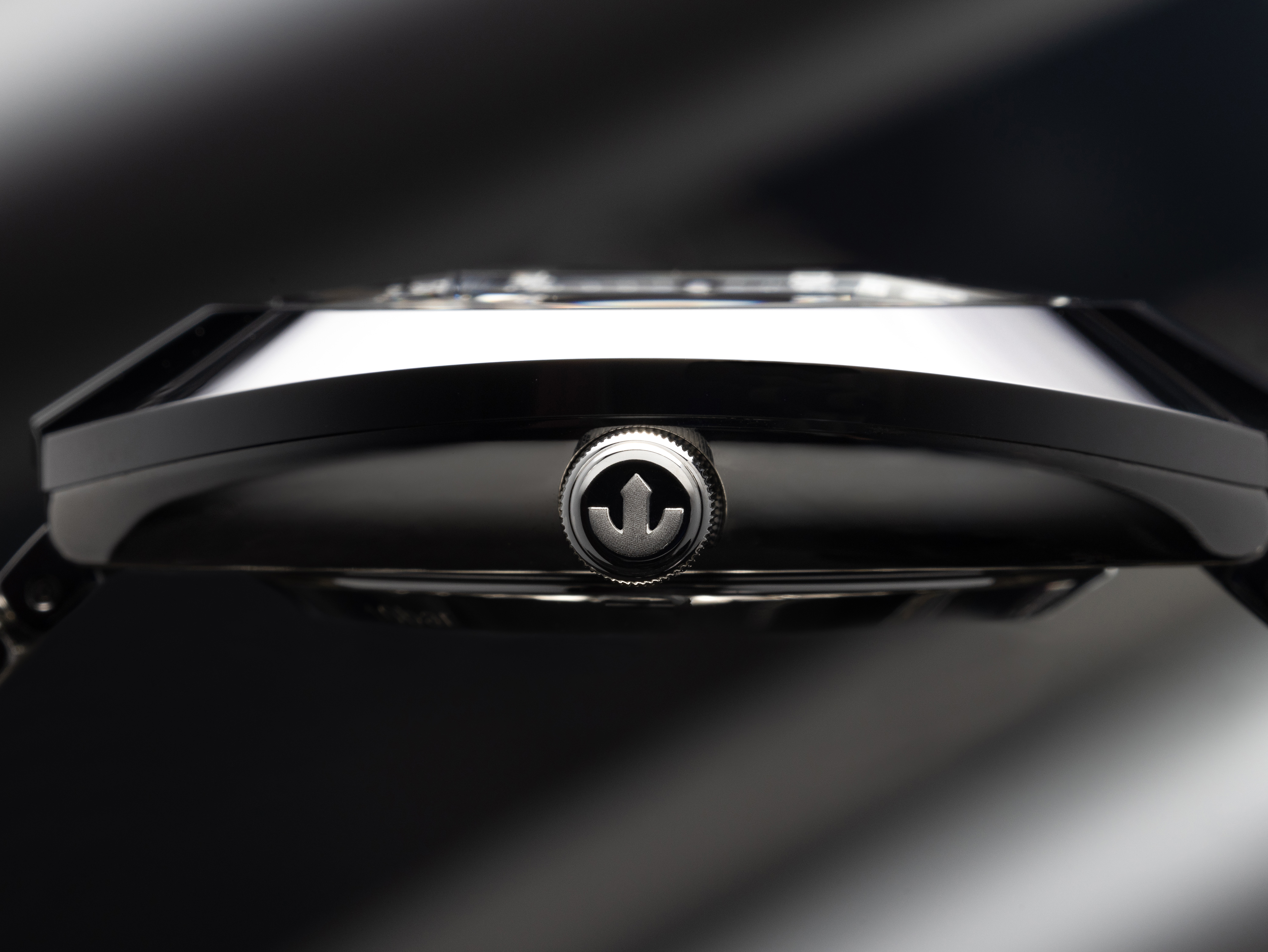 DiaStar鑽星系列創始型鏤空腕錶採用高品質R808自動機械機芯的另一型號,具有煙灰色塗層,搭載多種元素,營造出對比鮮明的視覺效果。透過正面和背面的藍寶石水晶窗,自動機械機芯華麗細節的技術優雅一覽無遺,提供80小時動力儲存。防磁Nivachron™游絲搭載在已通過全部五個方位精準度測試的機芯中,確保一切都極為精準且可靠。開放式結構、令人難忘的R808型鏤空機芯,為全新DiaStar鑽星系列創始型賦予了更輕盈、更靈動的風格,同時透過Ceramos™錶圈創造的視覺框架,形成完美的設計對位。漂浮黃金色時標和指針覆有白色Super-LumiNova®夜光塗層,進一步襯托出腕錶的深色調,即使在光線不足的條件下也具有出色的可讀性。